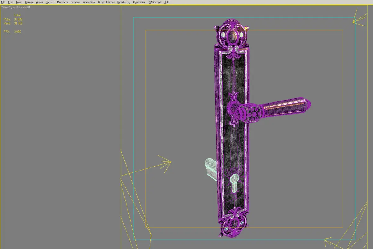 Venezia castello (door handle)Real size product: 352x150x140mmModel created with 3ds Max 2008 Native Max file setup with V-Ray renderer and V-Ray materials