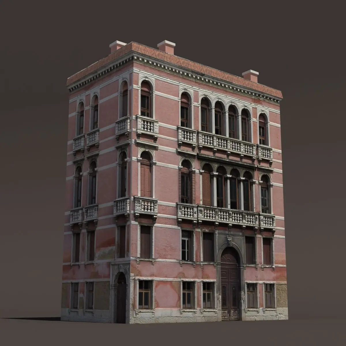 A 3D model of a low poly building. Exterior only, no interior.
