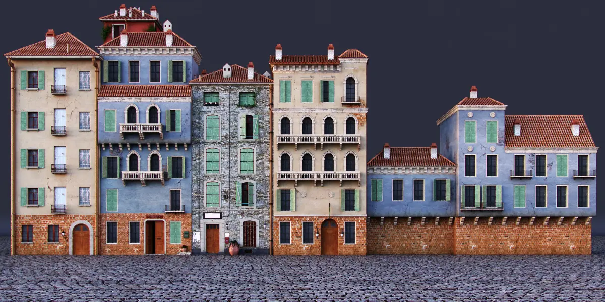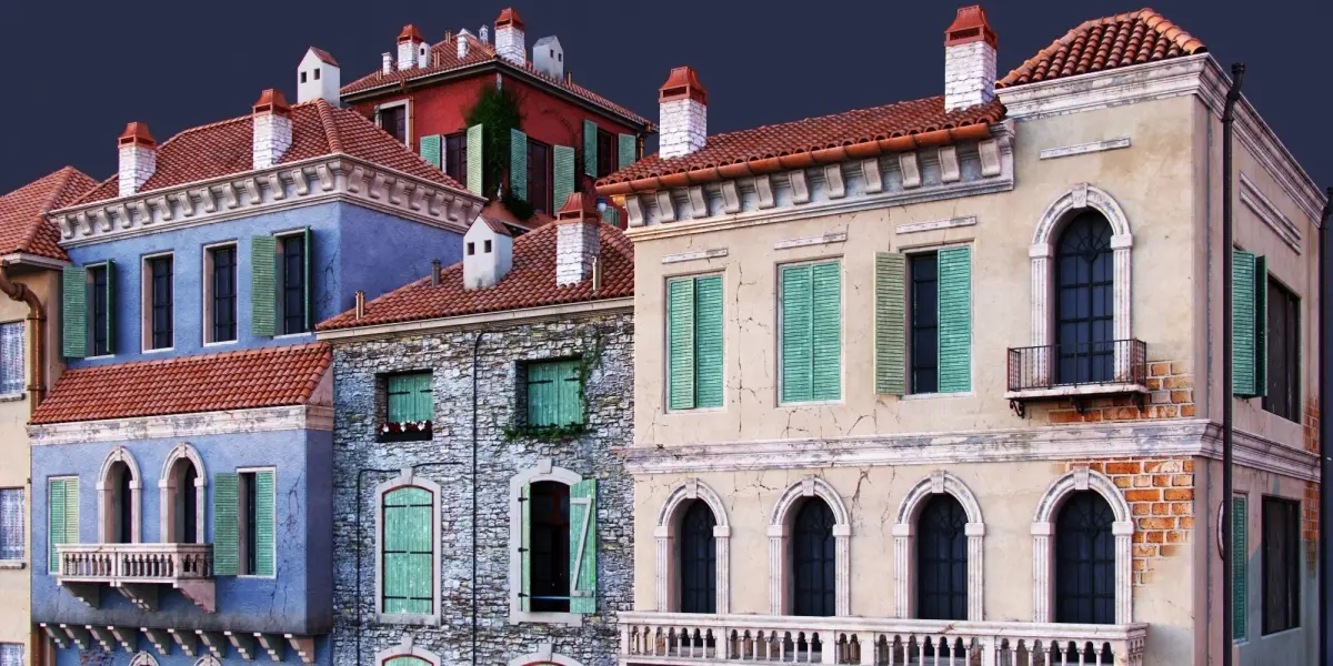 Venice style buildings, with a high resolution and a lot of details to bring a realistic picture.