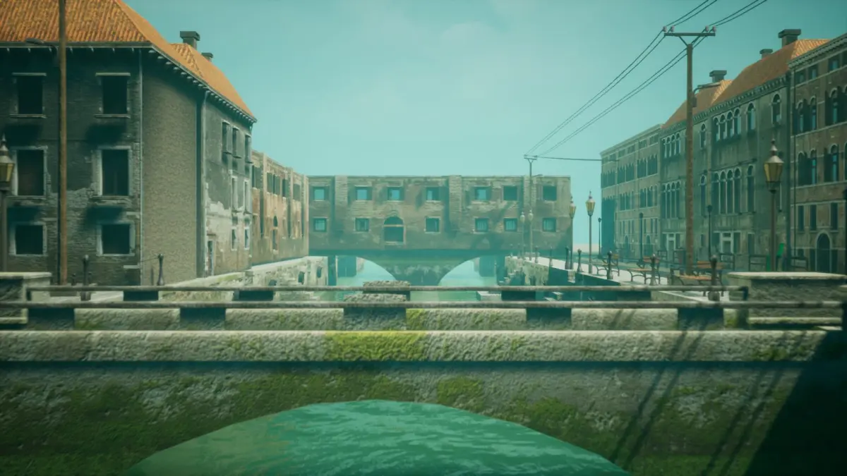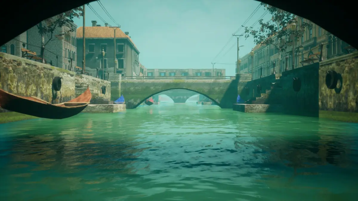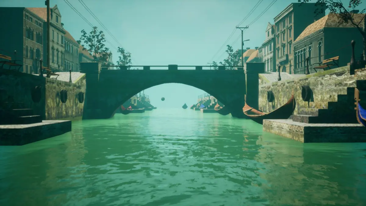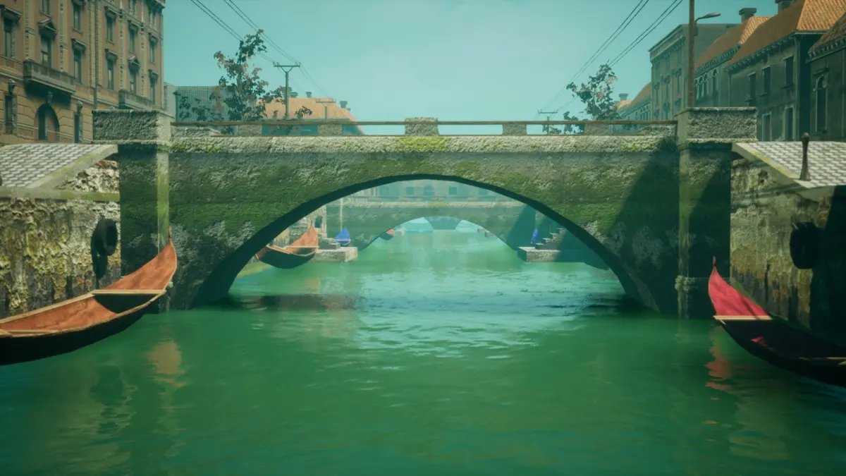 Complete scene with 34 game-ready models, including a street and street props (like benches, lamps,trash bins, posters, post boxes, signs) buildings, bridges,boats, trees and others.