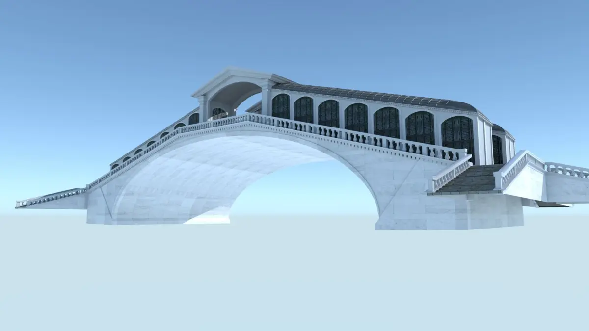 3d model of Rialto Bridge in VeniceMade in BlenderAvailable in various formats : .abc, .blend, .stl, .dae, .fbx, .mtl, .objTextures and materials included and namedUV-unwrappedPolygons/Faces : 209 395Vertices : 223626