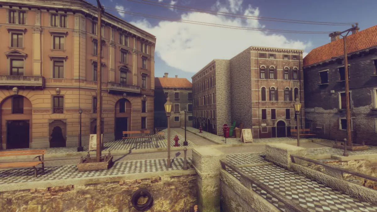 This pack includes street props like houses, buildings, bridges, plants, benches, lanterns and decorative objects to create a Venice city scene.