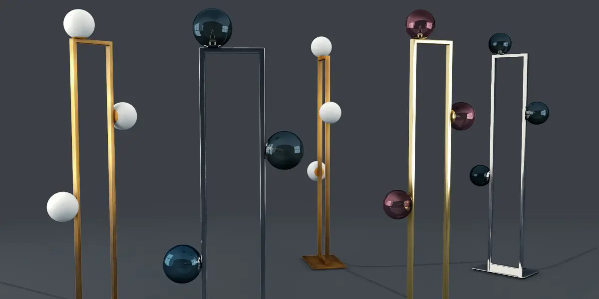 This is the mondrian glass floor lamp from VeniceM.Finishes: black nickel, polished brass, natural brass. Bulbs in white, smoke grey and amethyst.