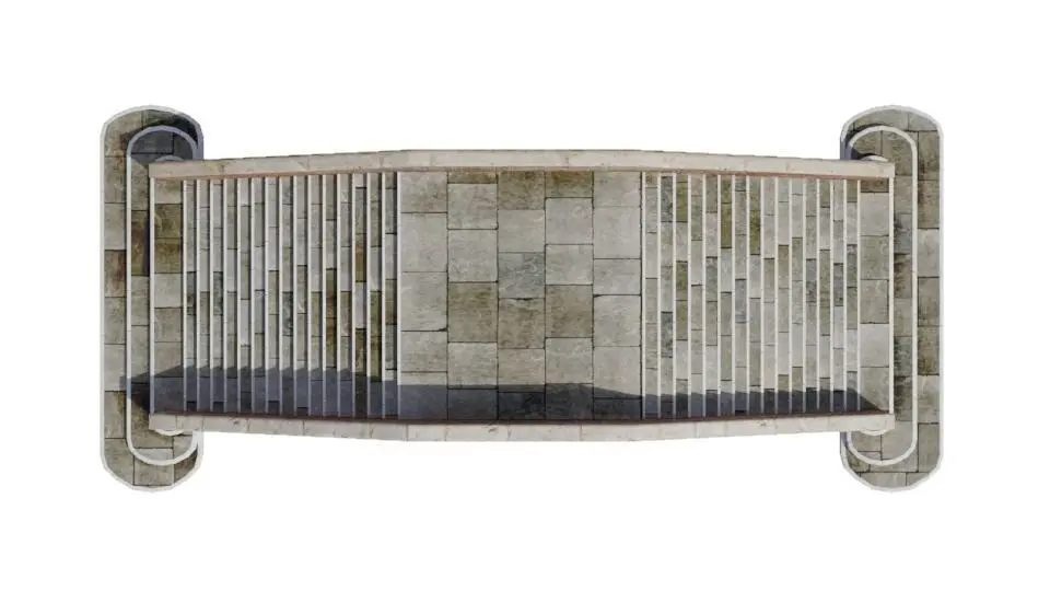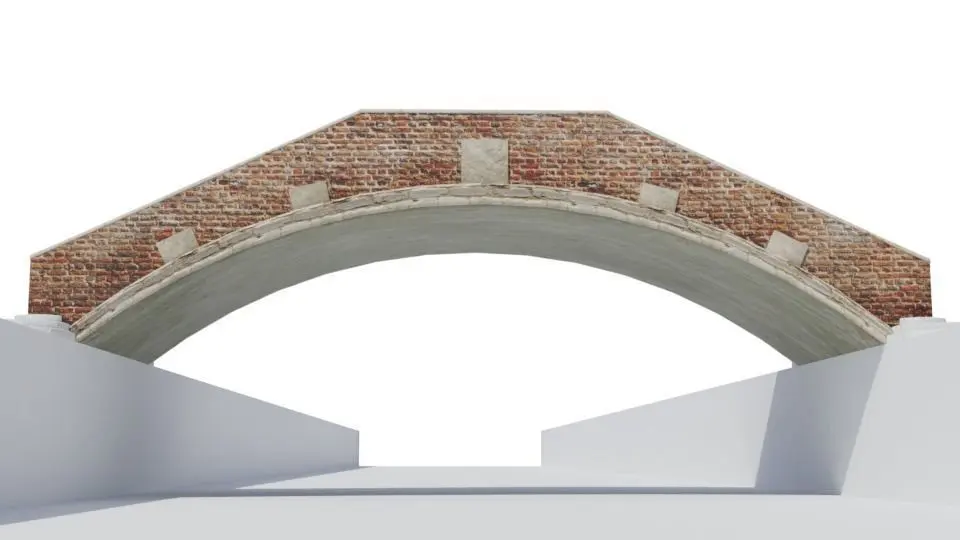 Stone bridge model made to real world units. The bridge will span a gap of 11.7m with a total length of 13.8m. It is 4.15m wide.