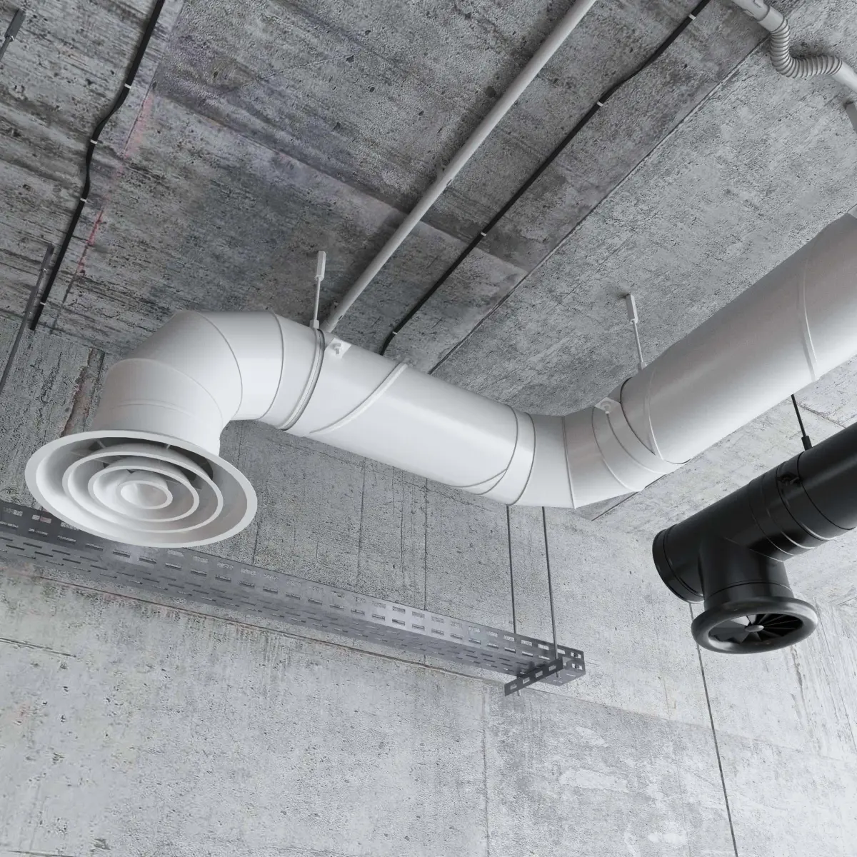 - 2 types of round ventilation pipes with all components, fittings, diffusers, pressure equalization chambers.Diameter 20cm, 30cm, 40cm, 50cm, 60cm.