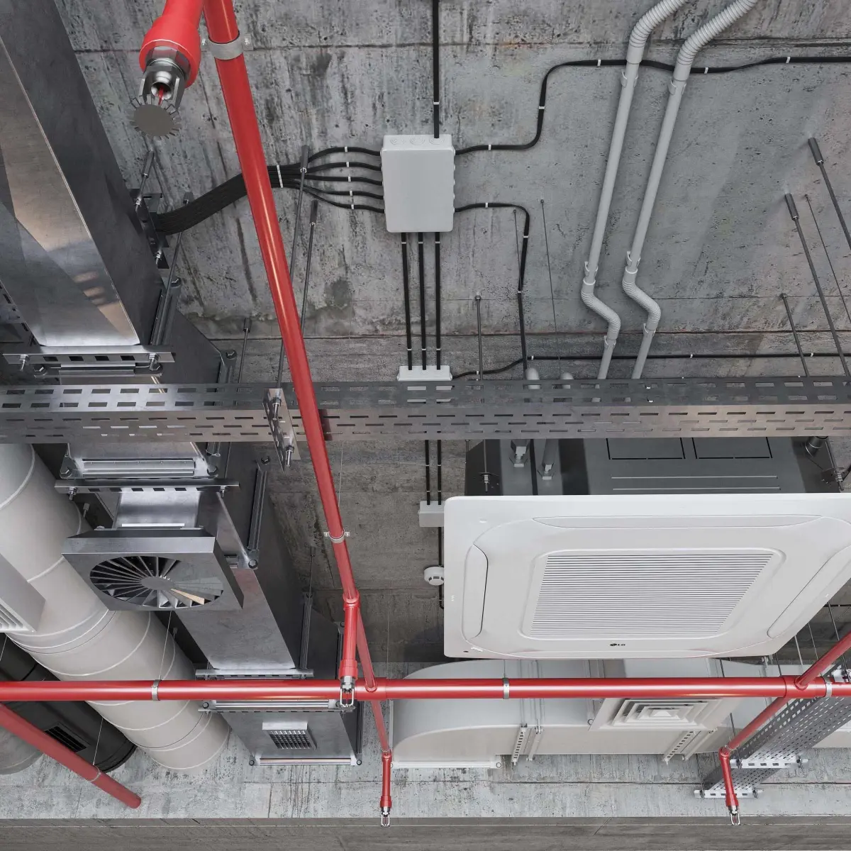 - 4 cassette air conditioners (in white and black).
