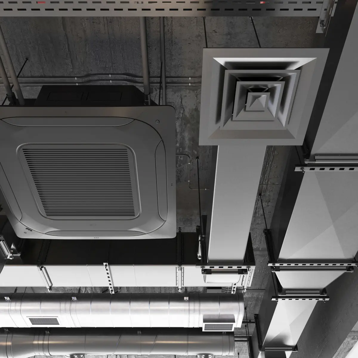 - 1 type of ventilating pipes of round section with all components, fastenings, diffusers, pressure equalization chambers.Diameter 20cm, 30cm, 40cm.