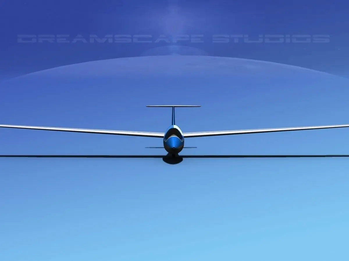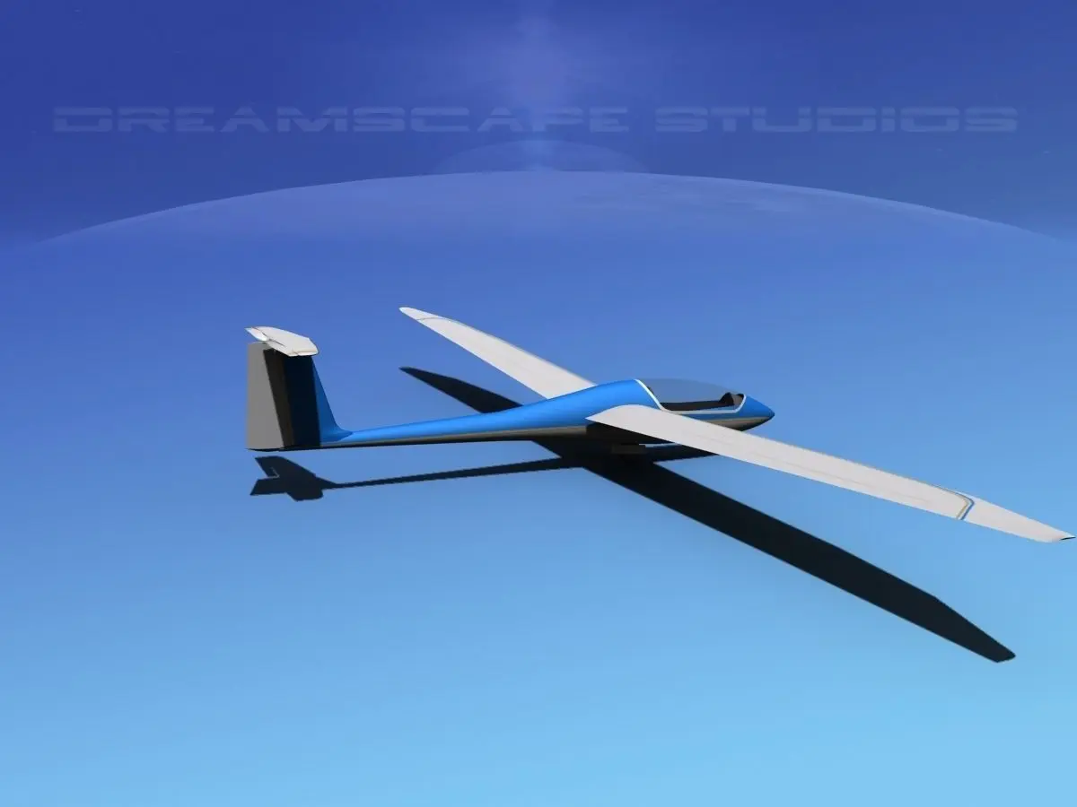 The Dreamscape Ventur 15 Meter sailplane is a fictional sail-plane based on a real one built in Europe. This model includes animateable control surfaces, ailerons, spoilers, elevators, and rudder, canopy and wheels. It comes with all materials and textures as shown. It has a moderately geometrically detailed cockpit and exterior detail that make it a good in flight animations subject. This model is provided here in multiple formats for your immediate downloading as well as 15 choices of paint scheme.