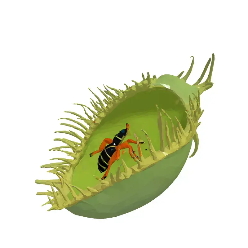 This highly detailed 3D model depicts a Venus flytrap, a carnivorous plant, with an insect caught inside its trap. Ideal for educational projects, nature documentaries, game development, or AR/VR experiences. This model is available in multiple formats including GLB, OBJ, STL, FBX, and DAE, ensuring compatibility with various software. It's optimized for both real-time and static rendering applications. Key features include: clean topology, UV unwrapped, and PBR textures. The model's meticulous detail brings a realistic touch to any scene, offering a captivating portrayal of this unique plant and its predatory nature. The insect adds to the scene's realism, showcasing the flytrap in action. Whether you're creating a lush botanical environment, an educational animation, or a thrilling game, this 3D Venus flytrap model is a perfect addition. It's ready to import and use, saving you valuable time and effort in your creative projects.