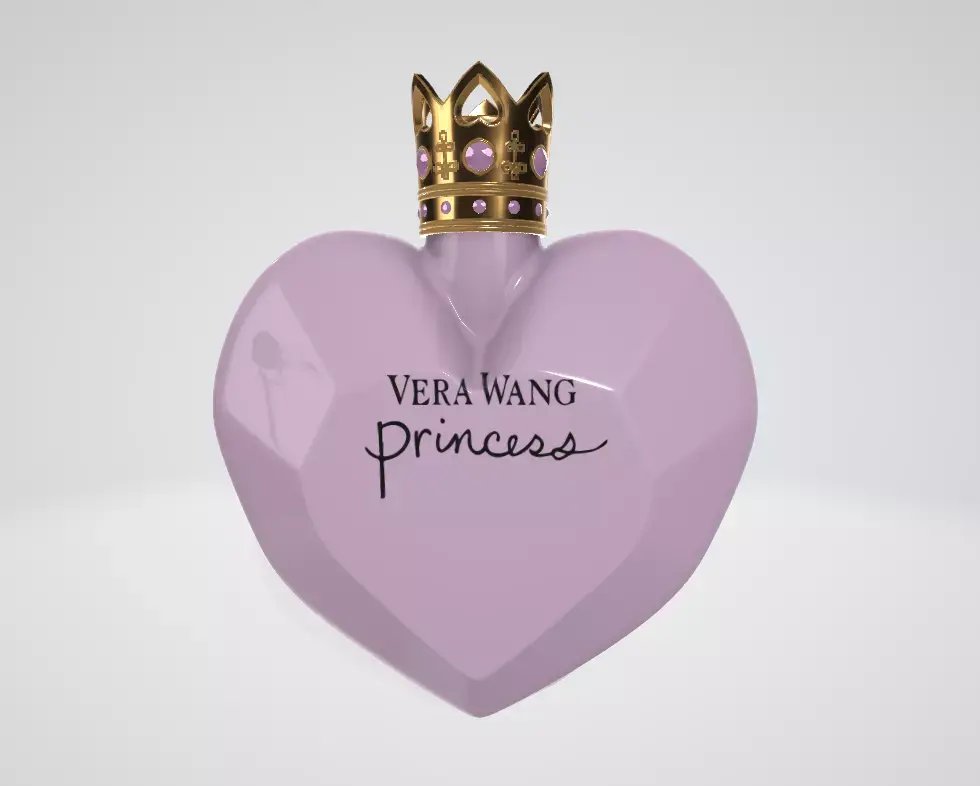 Vera Wang Princess EDT 100ml for Women-created by blender mesh clean, soft, smooth. -mesh count less than 200000 -created by mesh 4 -main axis (0,0,0) is located at the lowest center point of the product -attached material with substance paint -exported to glb view -has accompanying textures: diffuse, normal, hight, ao, roghness