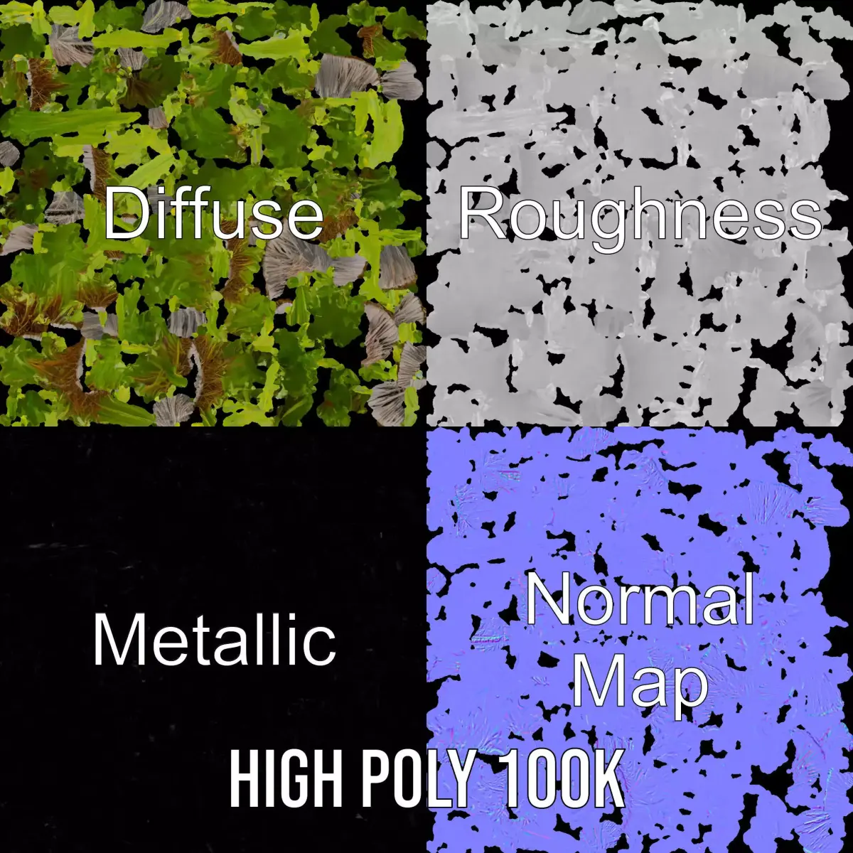 This verdant grass cluster model captures the lush, vibrant green foliage of nature, perfect for enhancing outdoor scenes in 3D environments. Each model has 3 levels of detail: low-poly (1000 triangles for mobile), middle-poly (10,000 triangles for environment), and high-poly (100,000 triangles), which allows for the use of this model in production rendering (such as 3ds Max, Maya, Cinema 4D, Blender, Vray/Corona/Cycles and all others), game engines (Unity and Unreal compatible), and interactive presentations, providing a choice of detail based on the LOD system principle. Ideal for landscape animations, game development, and architectural visualization, the grass cluster adds a touch of realism to any scene. The model's textures are PBR, Diffuse, Normal Map, and reflection/roughness/metallic, which are suitable for any modern rendering engine. All models are accurately unwrapped and have no overlapping UV. All textures are 4096*4096 in size. Like and leave a comment for the model if you find it useful.