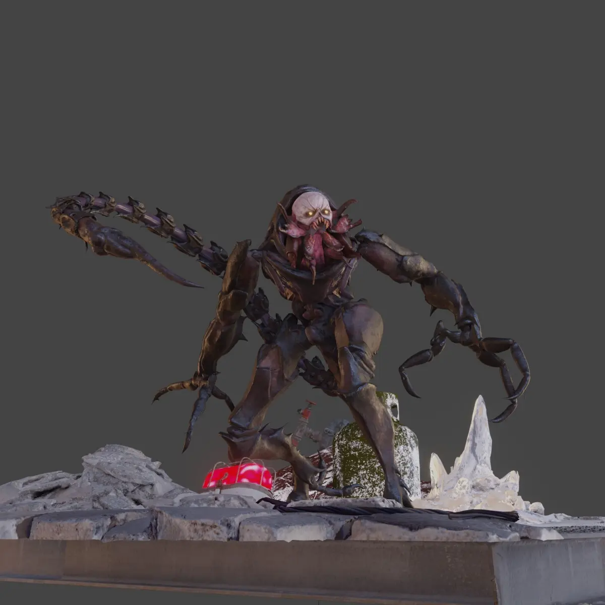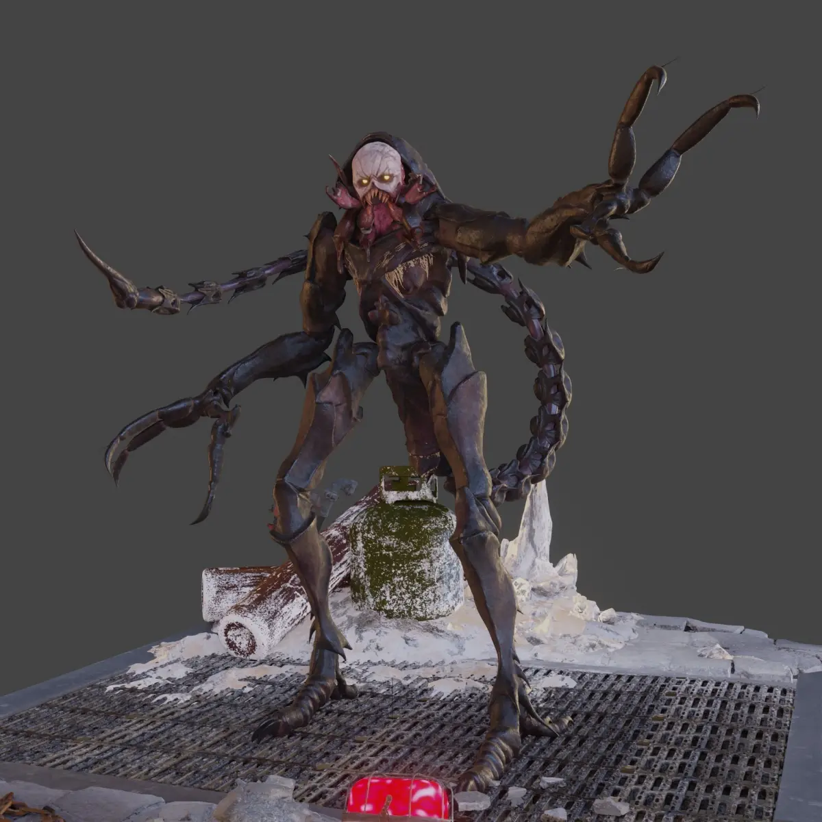 Low Poly Model, 8k textures, Basic rigg, Stage to pose the character, 3 pre-made poses in blender