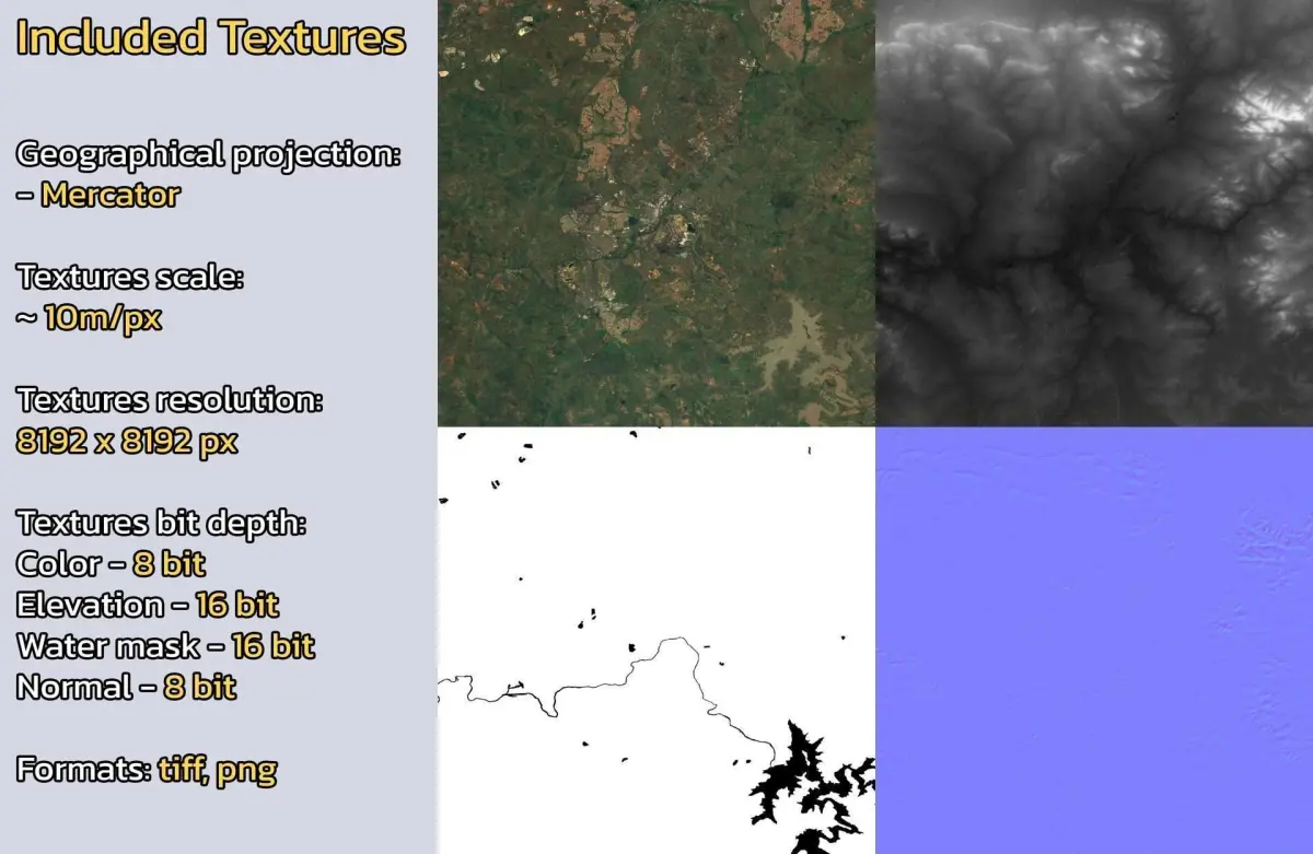- Textures resolution: ~10m/px