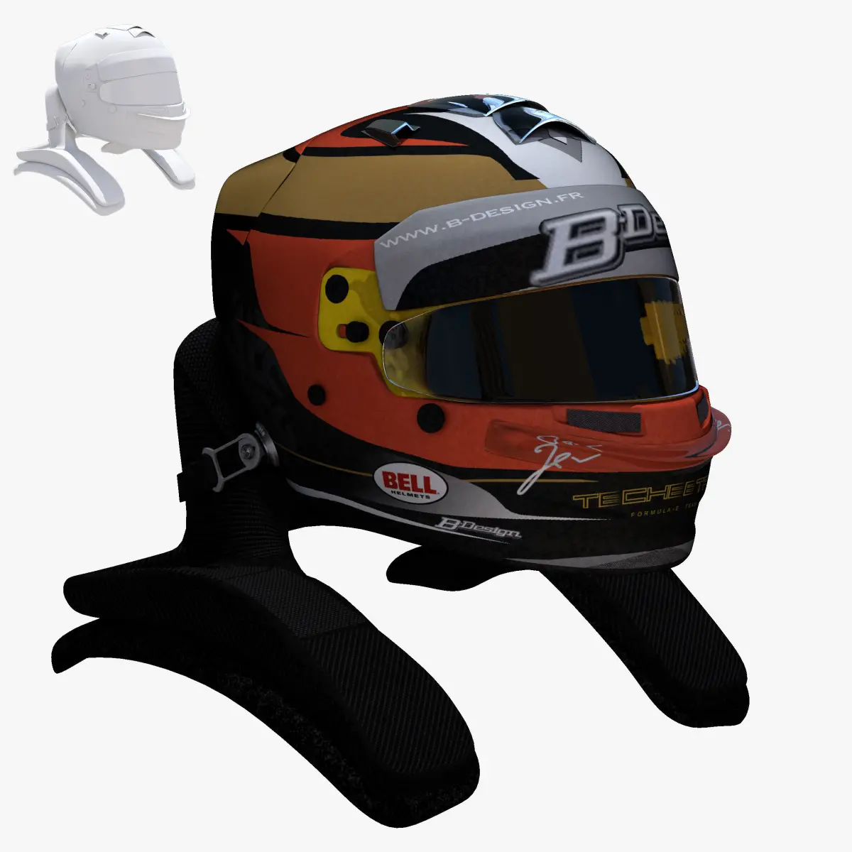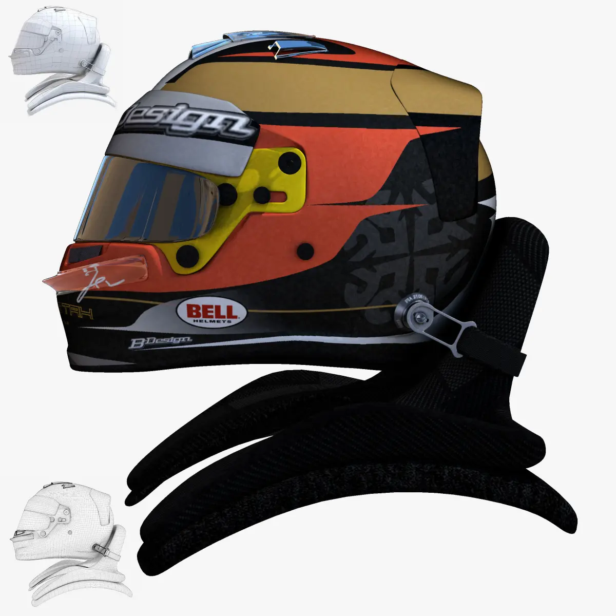 This is a 3D low poly model ,it was designed to provide a high definition in a low poly. Standard low-poly mesh with specific poly count. It`s the most accurate and realistic of the market. This is a recreation of a F1 Helmet model,it can suffer modification over the season. The model is completely ready for use visualization in maya. For low poly model simply press 1 and for the high resolution press 3. In Cinema4d go to function menu and subdivide. In 3dmax meshsmooth In the low poly: Poly count : 5963Vertex count : 6314In the smooth version: Poly count : 23848Vertex count : 24538Textures included. Each texture is in jpg format and have a 4K texture resolution for high quality It has color texture Because of different Disk topology at different computers it might be required to change the textures path at the destination computer. The 3D model was created on real base. It's created accurately, in real units of measurement, qualitatively and maximally close to the original.