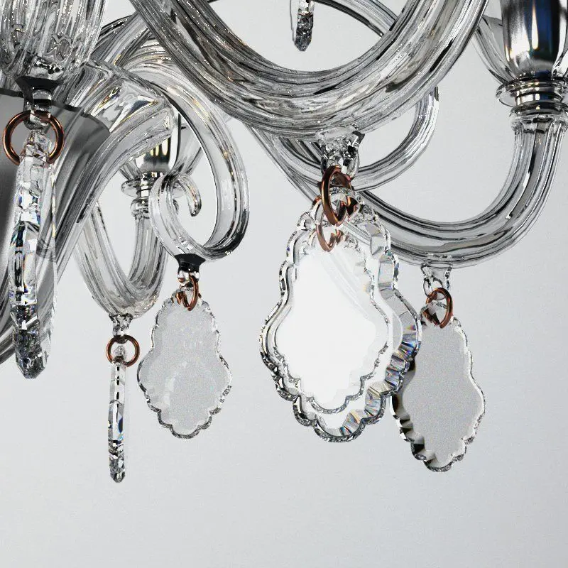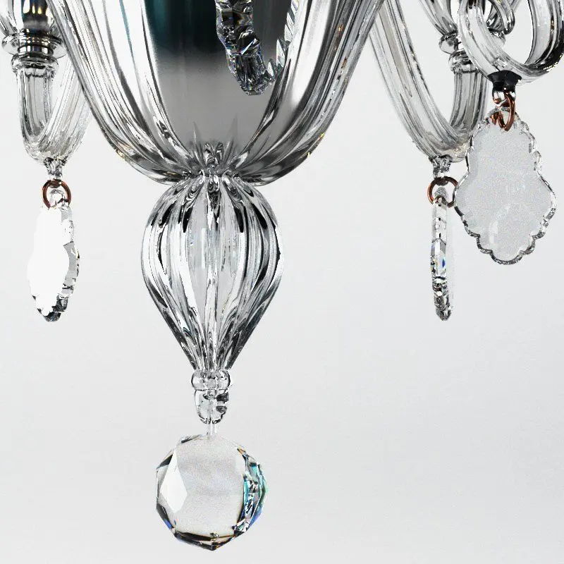 FLANELLE | ChandelierMurano glass chandelierManufacturer Veronese design by Veronese Flanelle Collection Dimensions : H 80 cm / 32″ x Ø 75 cm / 30″. Bulbs : 6/E14 x 40W (Max). Frame : Chrome. Glass color: Crystal, grey or black.