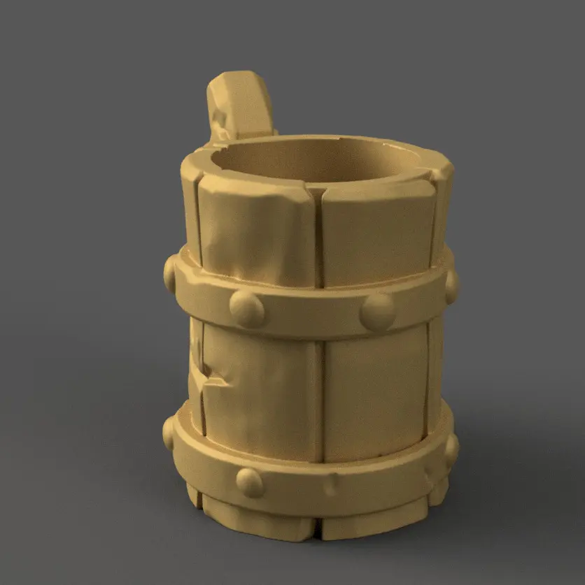 Design ConceptThis model is inspired by medieval tavern aesthetics, aiming to resemble a rustic wooden mug often found in fantasy settings.