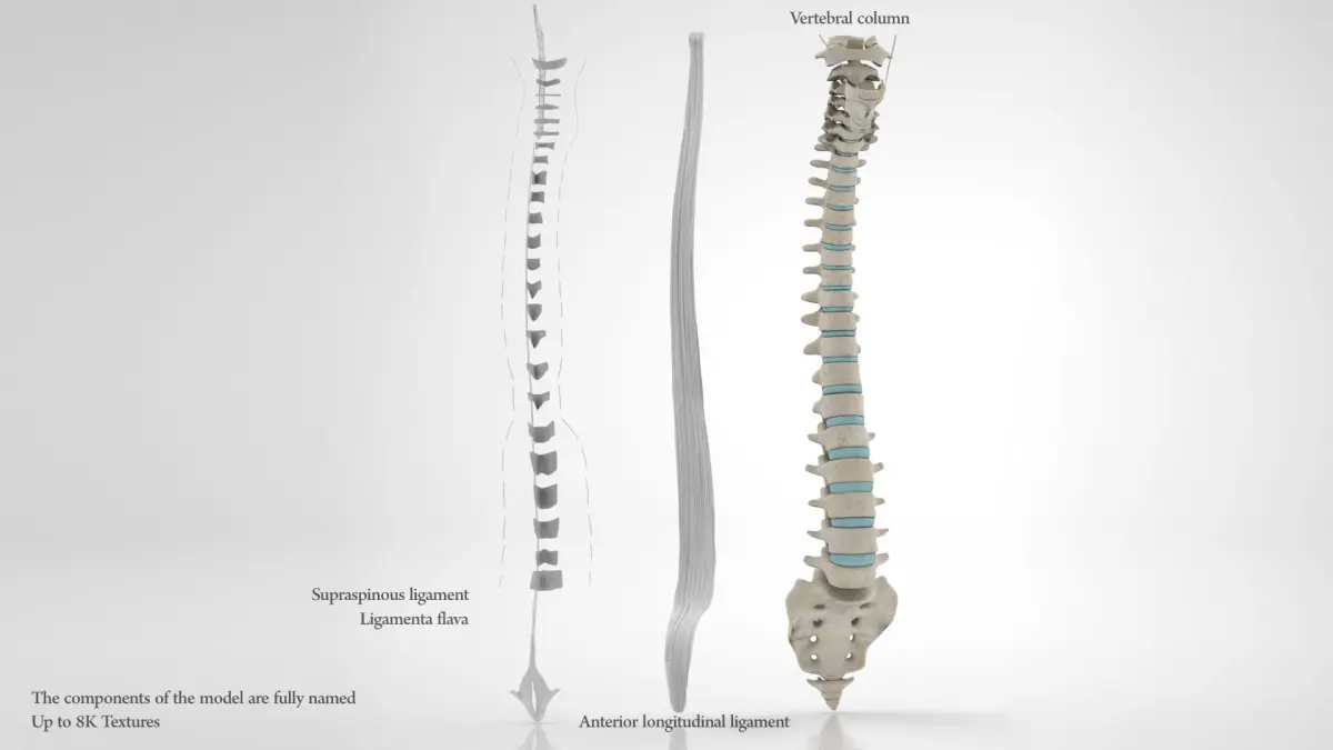 Vertebral column is a high quality, photo real models that will enhance detail and realism to any of your rendering projects. The model has a fully textured, detailed design to 8K that allows for close-up renders, and was originally modeled in 3ds Max 2014 and rendered with V-Ray