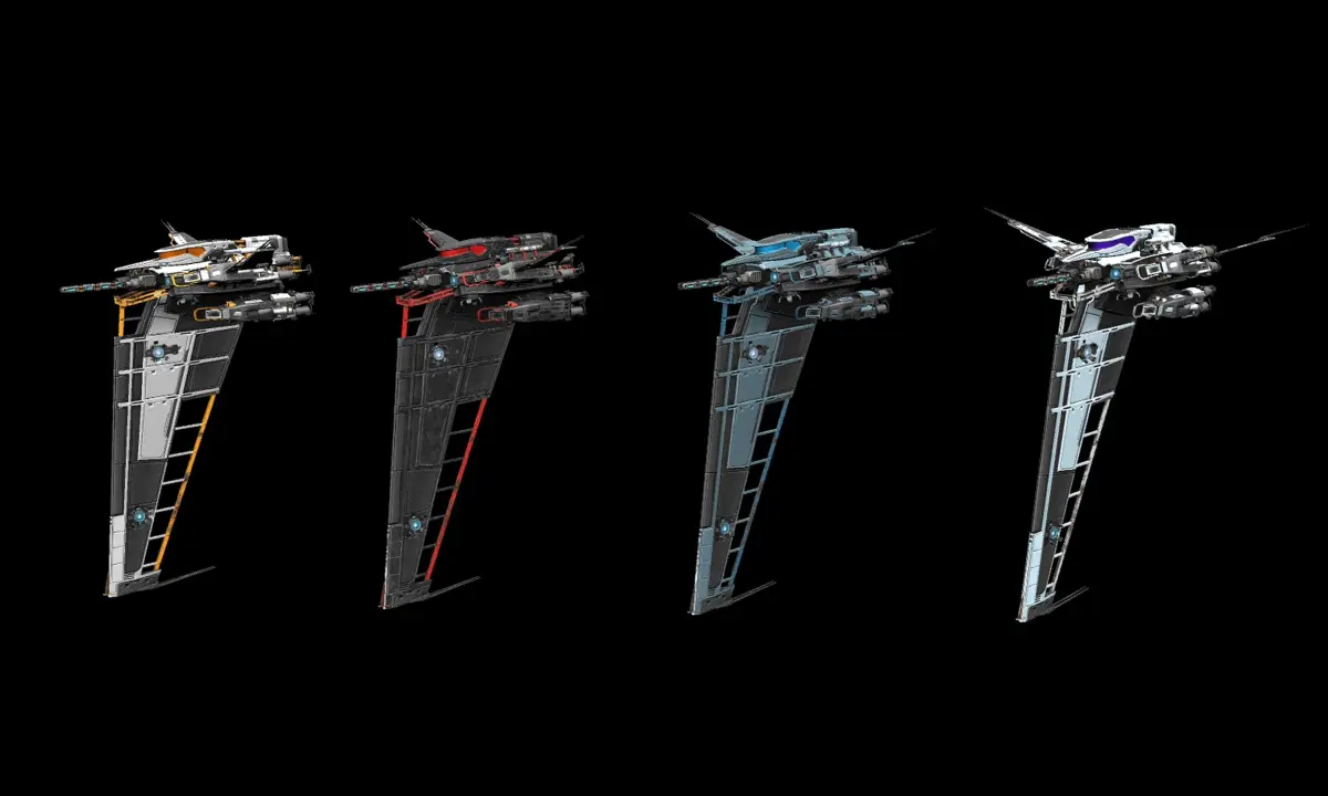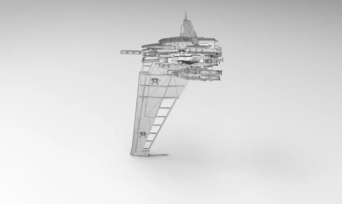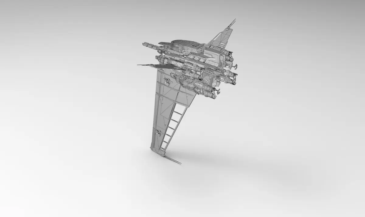 - 22000 polygonsOne spaceship with 4 color schemes.Big vertical wing work like a large scanner, also 11 thrusters and 8 main engines helps to quickly rotate the ship in the right direction.High quality 4096x4096 resolution PBR (Physically Based Rendering) textures in PNG: