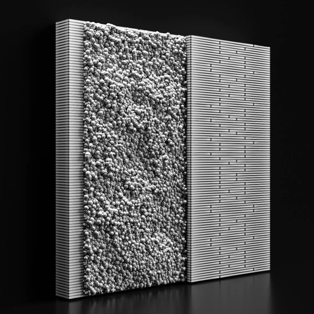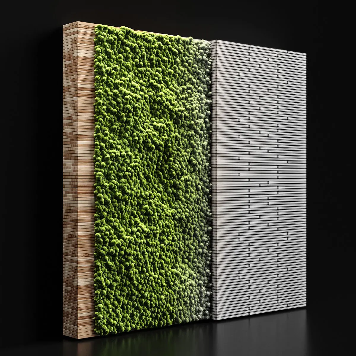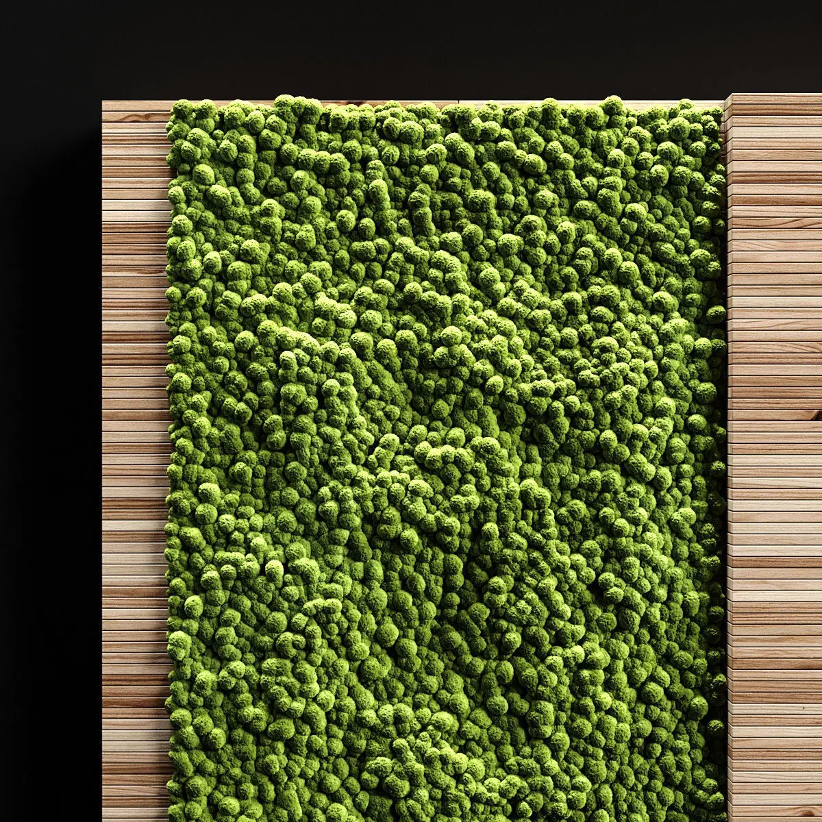 Wall decoration in the form of moss and wooden slats. It can be used both in residential and in public premises, such as a restaurant, cafe or bar. Suitable for interiors in a modern style and for interiors in a loft style.