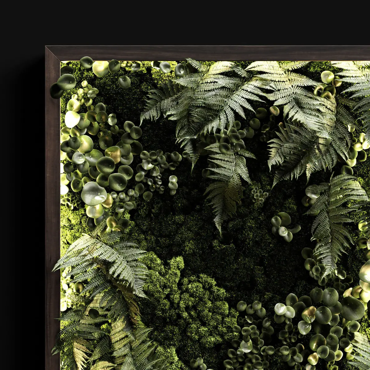 Stable moss in a frame with LED backlight. And a phytostall, consisting of moss, fern and peperomia. Suitable for both loft and modern interiors. It can be used as a decor over the head of the bed or desktop in the nursery. It can also be used as an accent in the living room or kitchen. It can be used in various public areas, such as a restaurant, bar, cafe or club