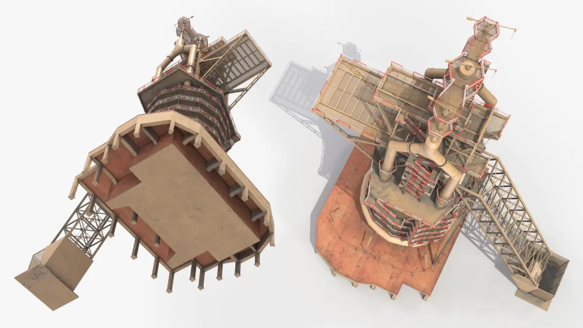 Vertical Iron Blast Furnace with Support Frame is a high quality, photo real 3d model that will enhance detail and realism to any of your rendering projects. The model has a fully textured, detailed design that allows for close-up renders, and was originally modeled in 3ds Max 2020 and rendered with V-Ray. Renders have no postprocessing!