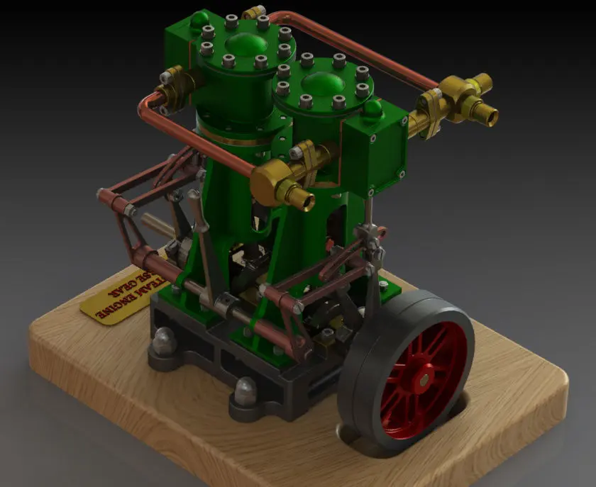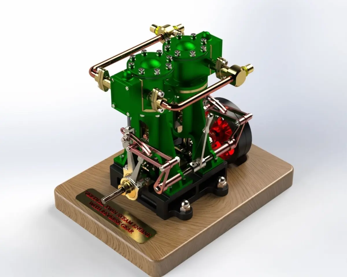 A 3D design of vertical twin steam engine which is rigged in solidworks. It is well detailed and is suitable for physical animation-with real working parts and rendering. This is a miniature model designed with real life dimensions.