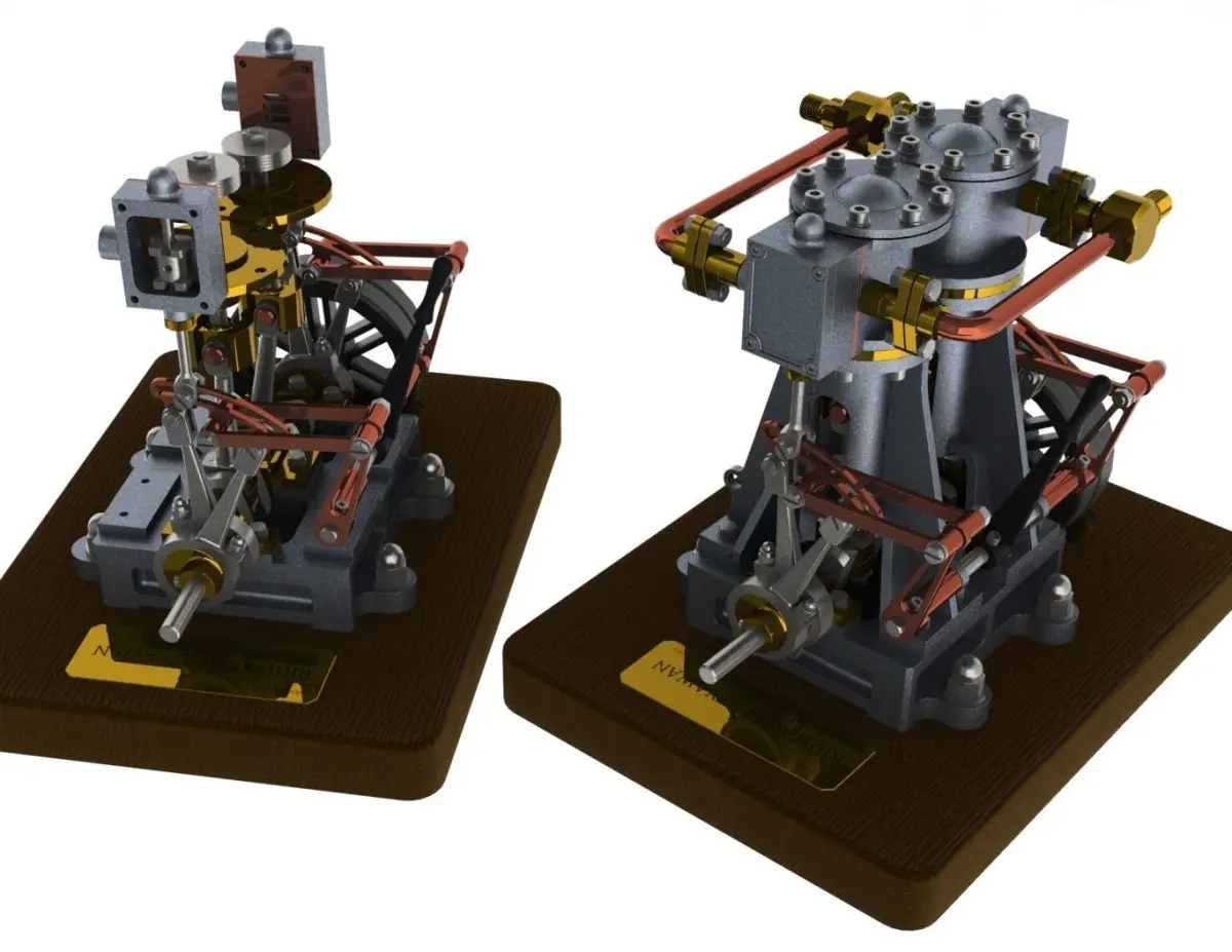 Vertical Twin Steam Engine with Reverse Gear