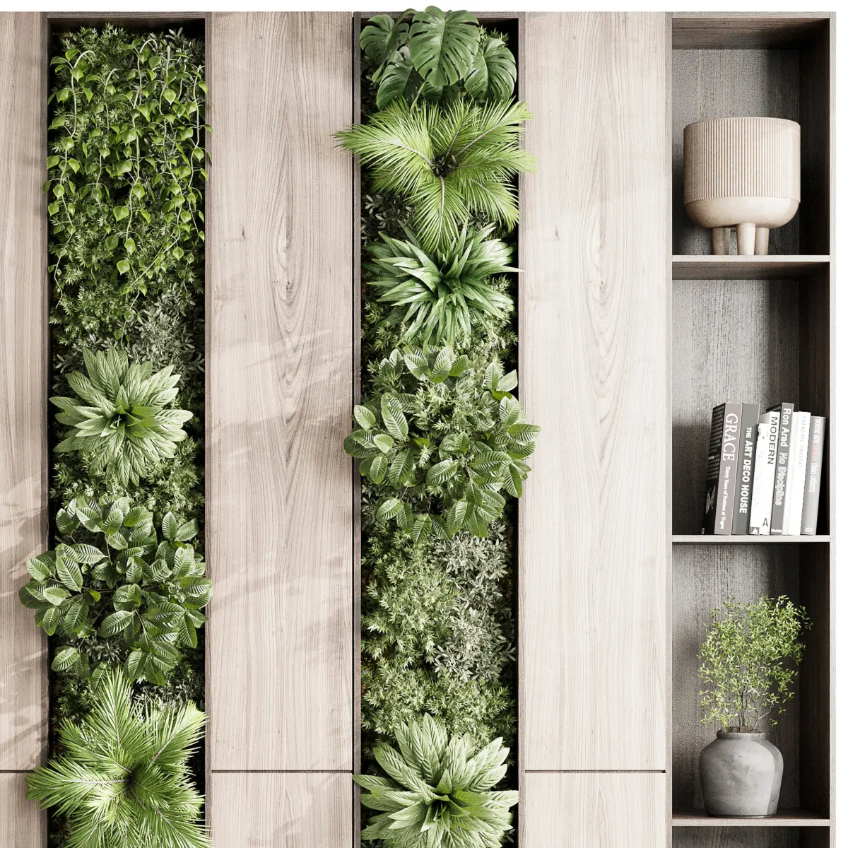 Vertical Wall Garden With cabinet furniture of houseplants indoor 01