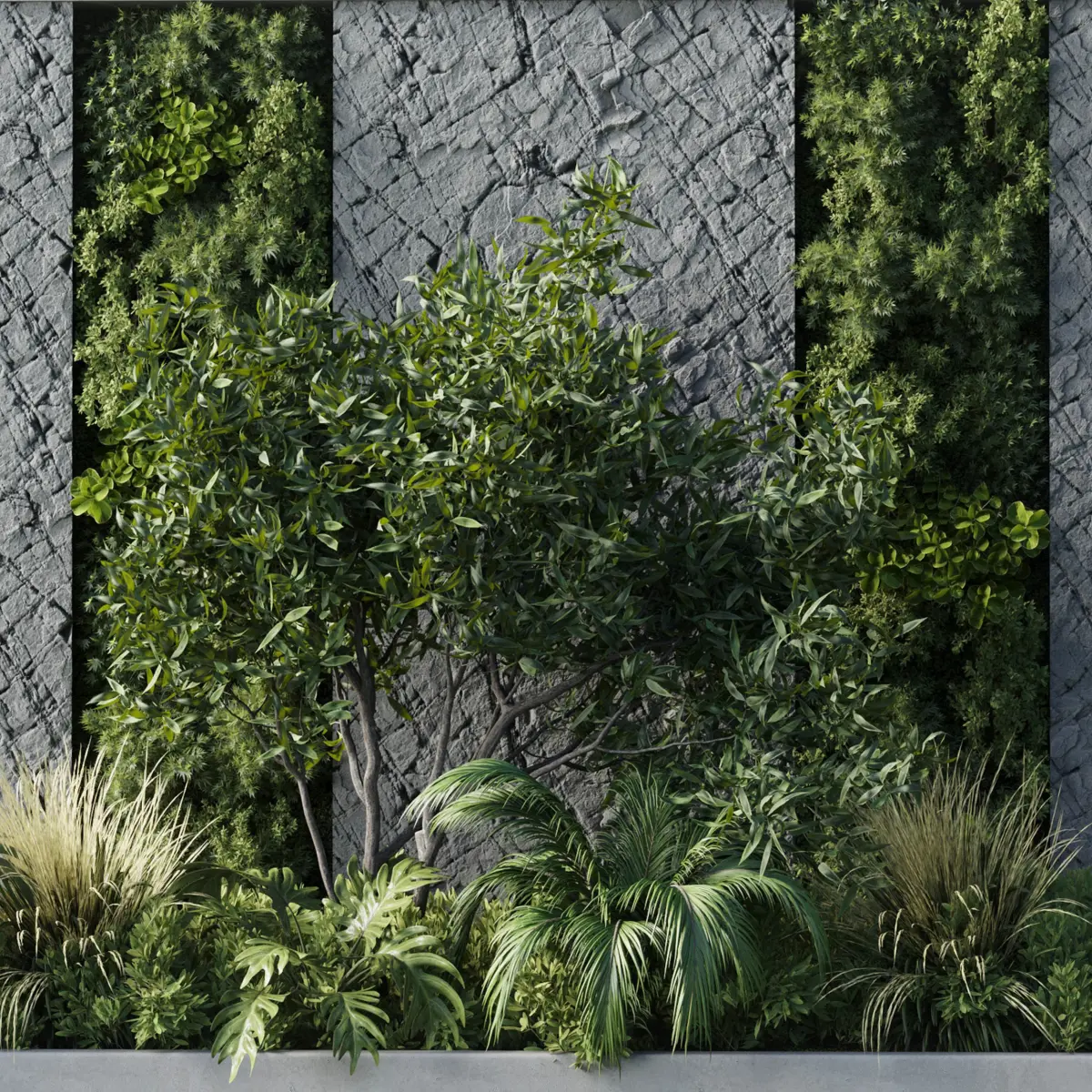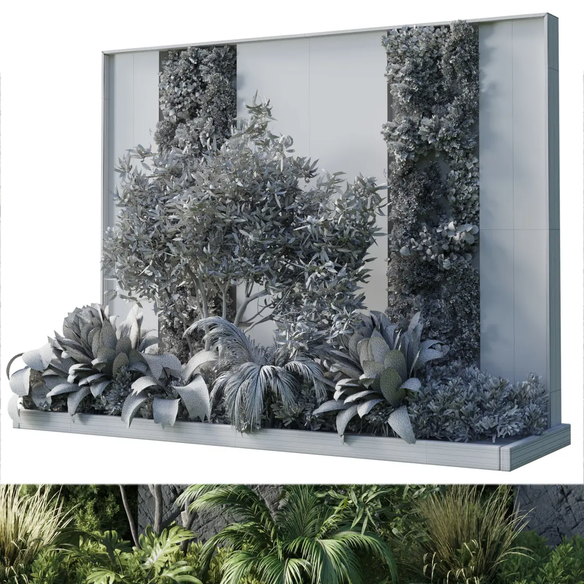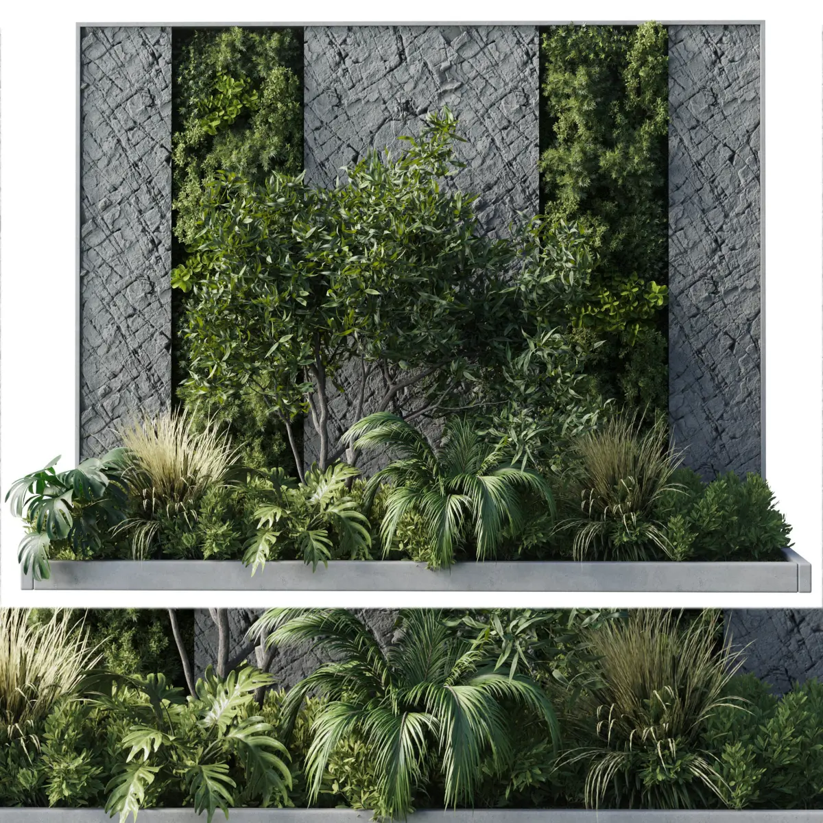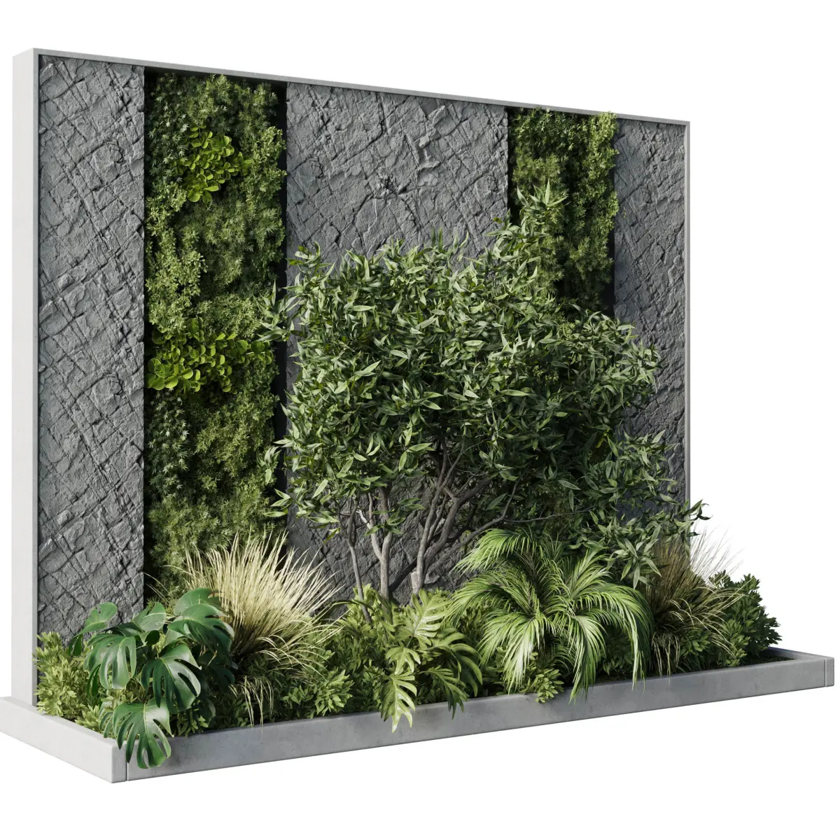 Vertical Wall Garden With concrete frame - set of indoor plant 50 File 3dmax 2015 vray & corona export file obj