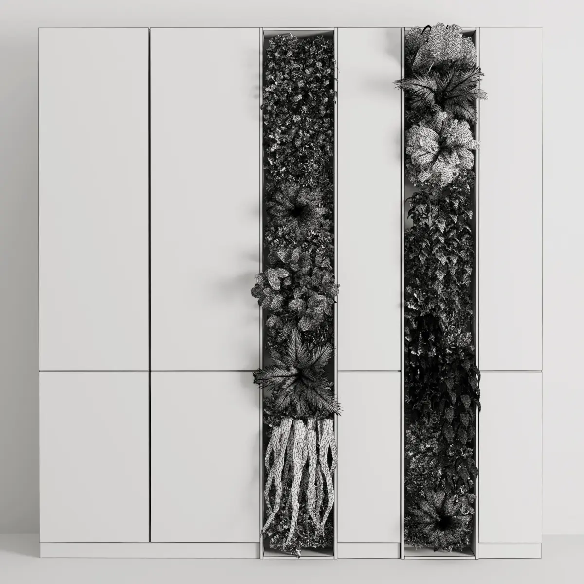 Vertical Wall Garden With wooden frame - cabinets of houseplants indoor 01