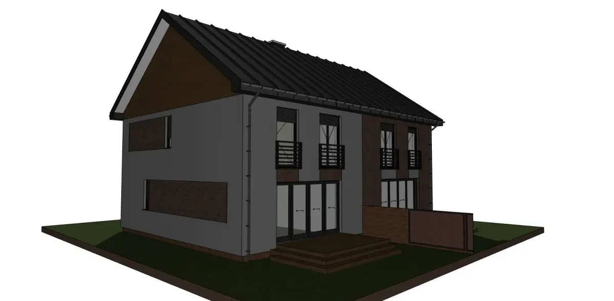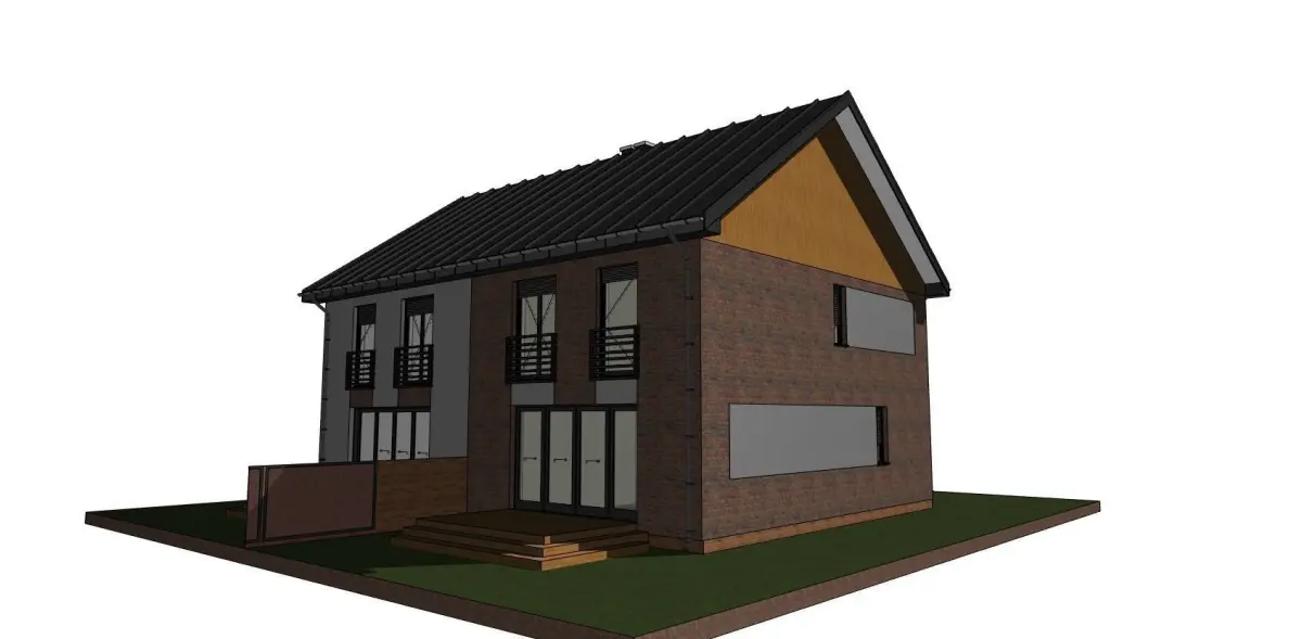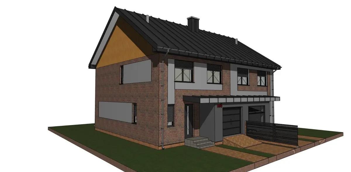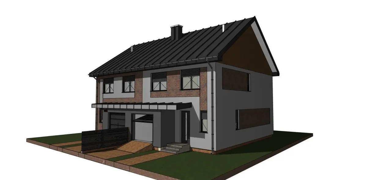 A model of a double house with a gable roof and a terrace, garage. The model was made for visualization in programs such as twinmotion or lumion, blender or other. It is a model of an existing home, not a fantasy.