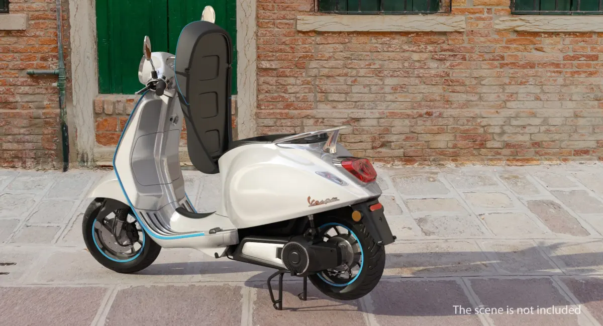 Vespa Elettrica 2019 Rigged Scooter is a three-dimensional model of a modern electric scooter with a fully rigged structure for animation and dynamic scenes.