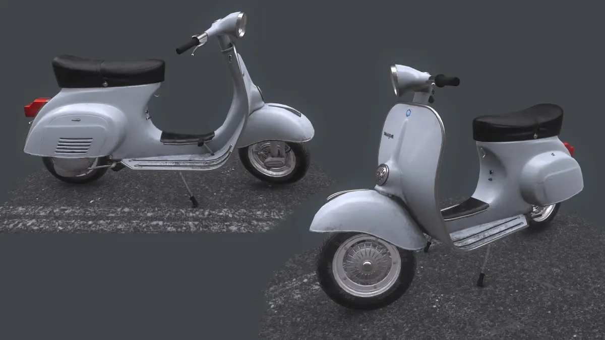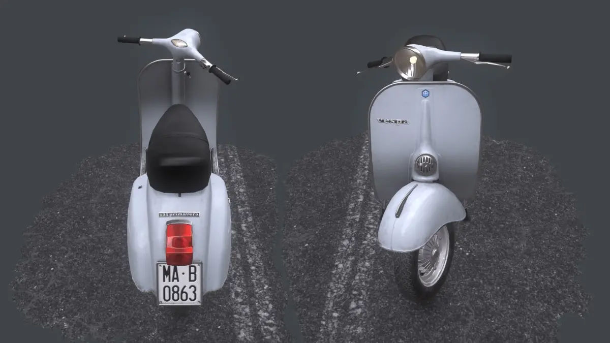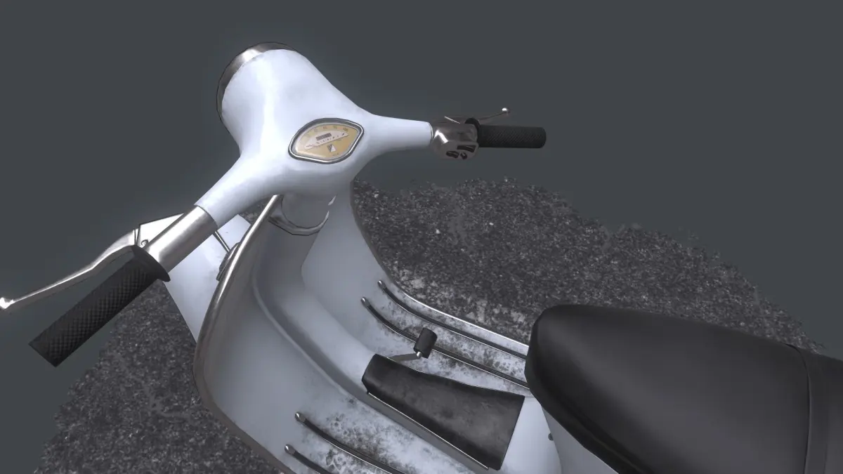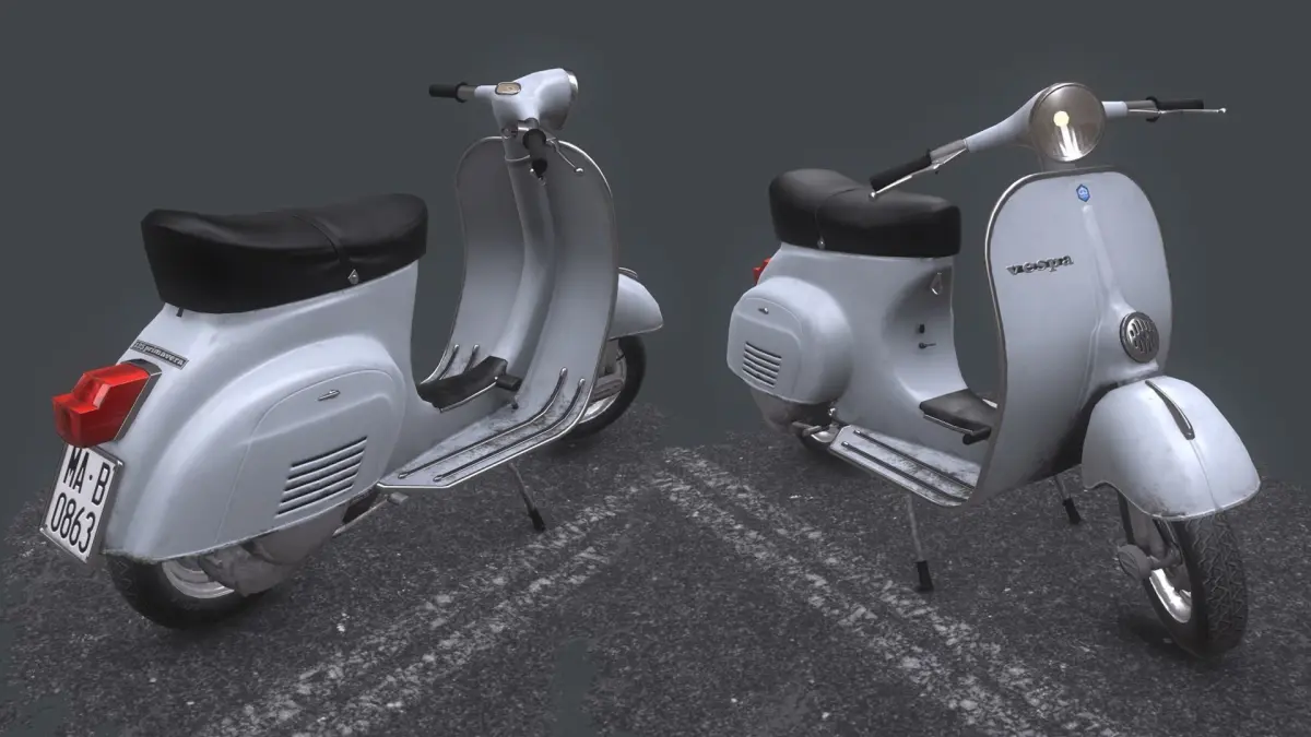 game ready model of vespa primavera 1964tris - 13,554verts - 7,806textured in pbr (metal/roughtness)consist of 2 set of textures:body - 2048*2048 and decal - 1024*1024