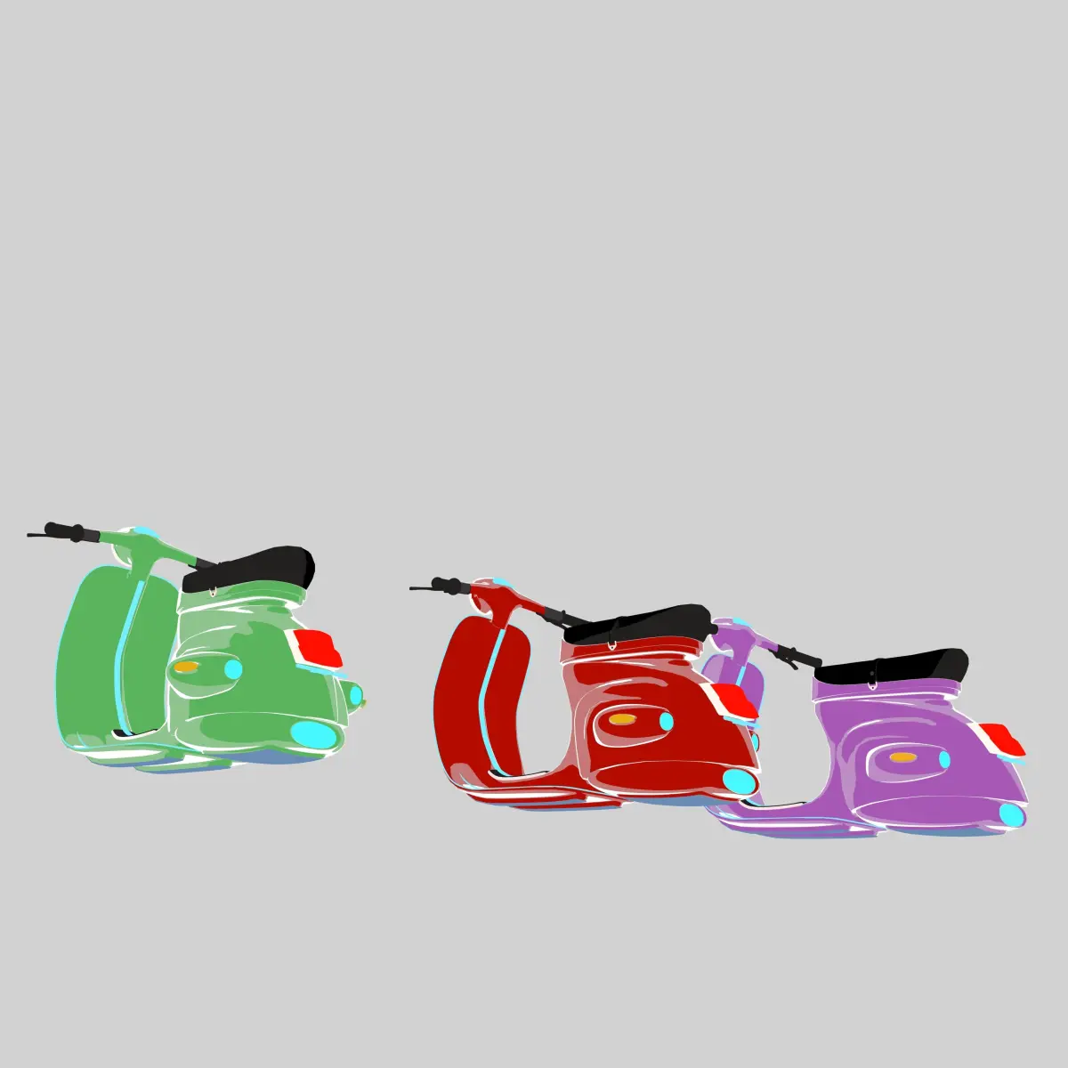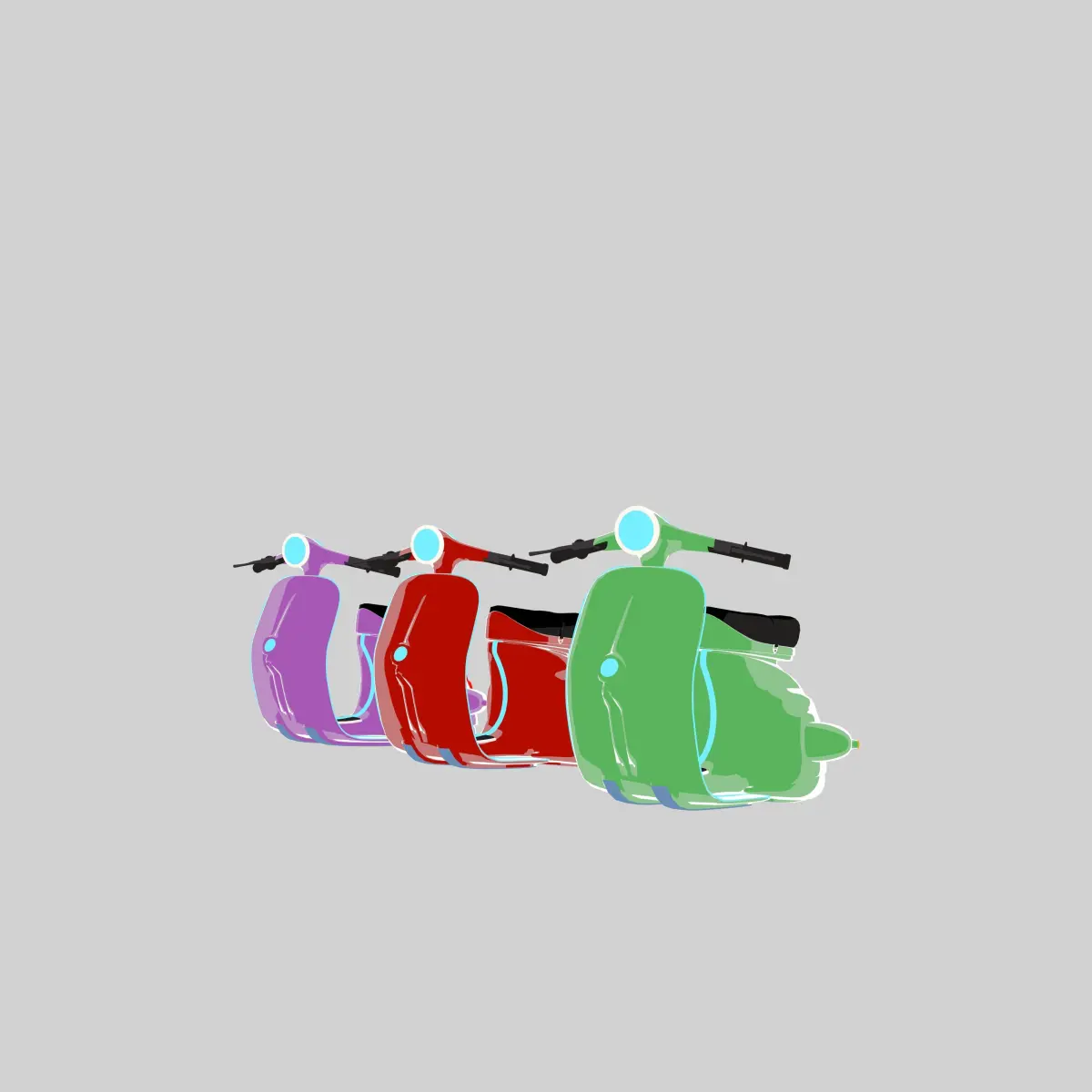 Add a unique, futuristic twist to your 3D scenes with these vibrant and stylized Vespas, perfect for manga, anime, or sci-fi environments.