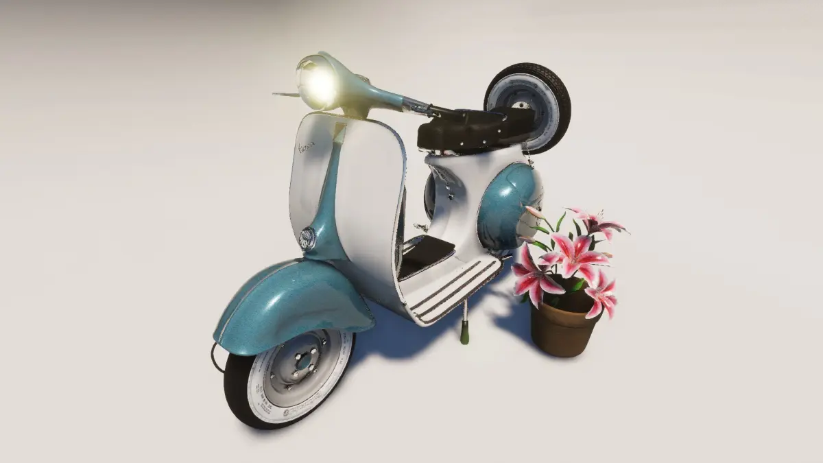This is a detailed 3D model of a classic and stylish Vespa Piaggio motorcycle. The file showcases an accurate representation of this iconic motorbike, capturing all its distinctive elements, from the streamlined body to the front headlights and rear wheel. The meticulous details and realistic make this model ideal for visualization projects, games, or animations.
