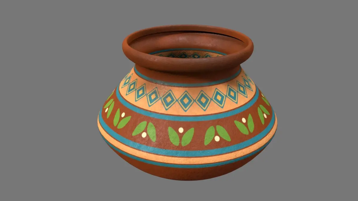 Asset Name : VesselF (Prop Stylized)Soil Pot (Crock) having stylized design painted on it.