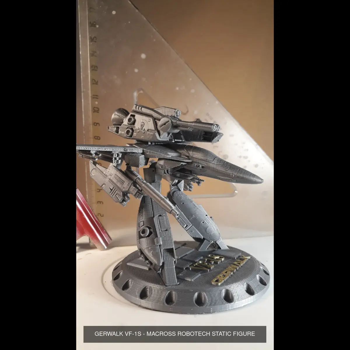 3 statues representing the three transformations of the VF-1S:BattroidGuardianFighter