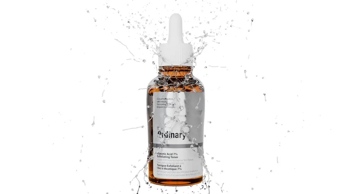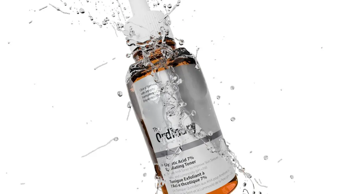 This is an animated water splash on a cosmetic product bottle for use in commercials and products visualization.