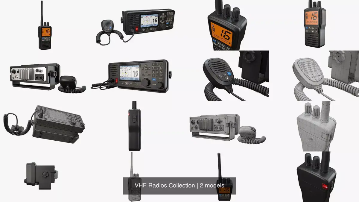 A collection of detailed 3D models of 2 vhf radios, modeled in Cinema 4D and rendered with V-Ray. The models were created using approximate real world dimensions.