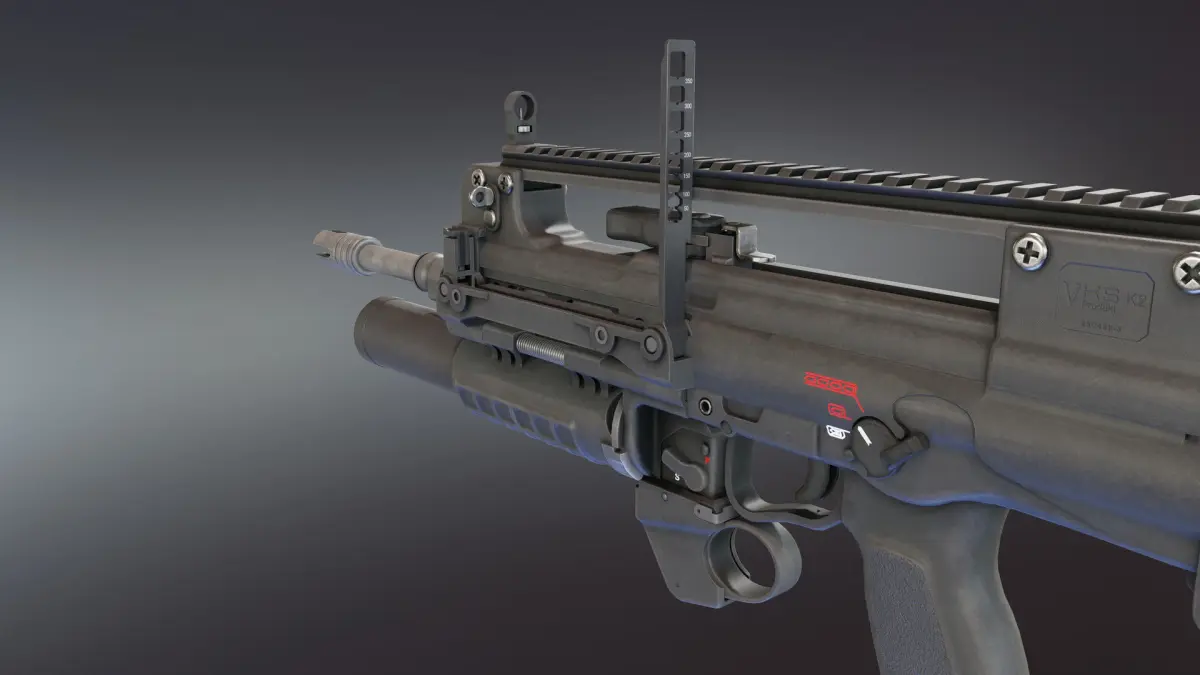 40×46mm grenade launcher that can also be mounted under VHS2 rifle.