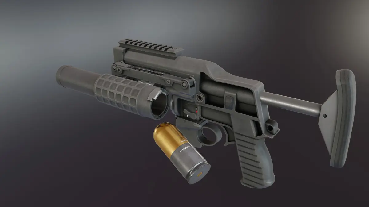 Model with mount/stock is rigged, but there are also files with all movable parts separated. I also included just grenade launcher it self for mounting under rifle.