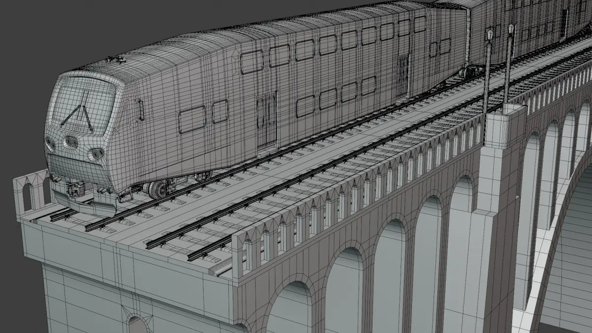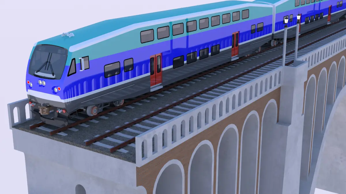- This is 3D model of viaduct with Bombardier BiLevel coaches and Siemens SC-44 locomotive.