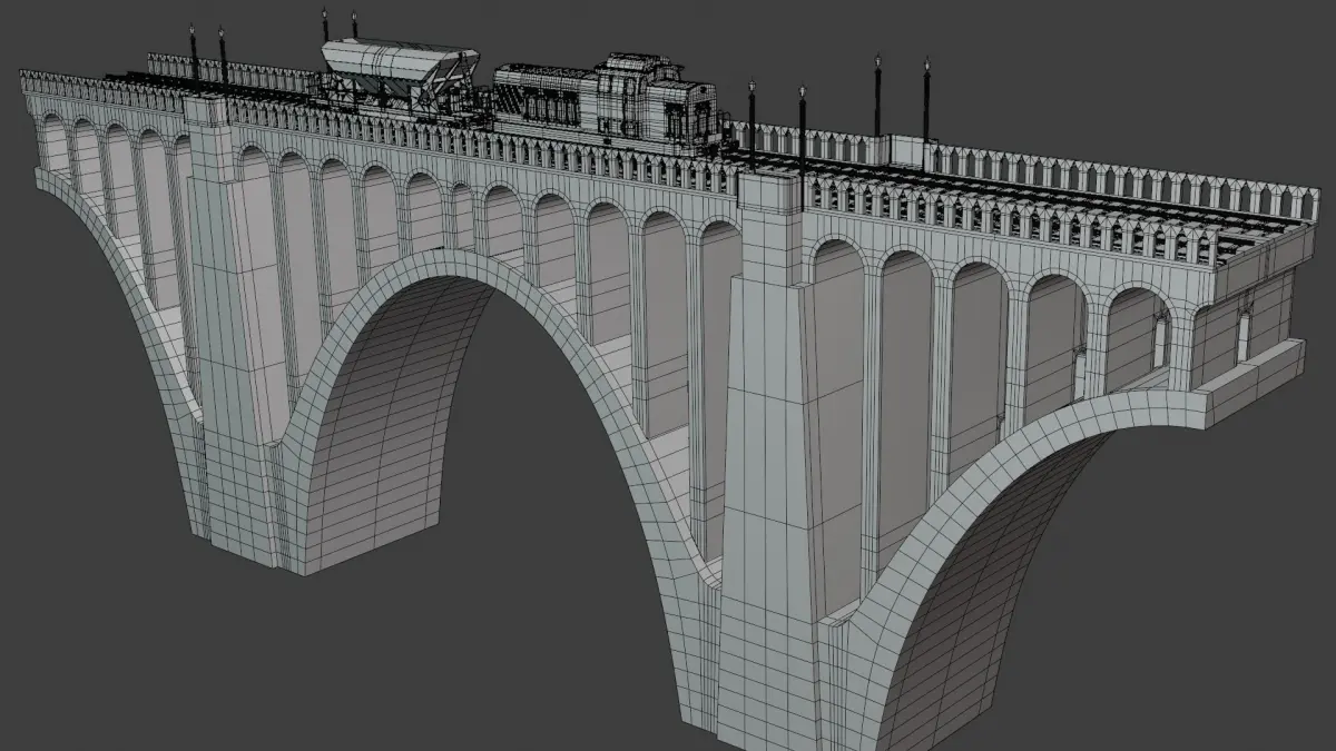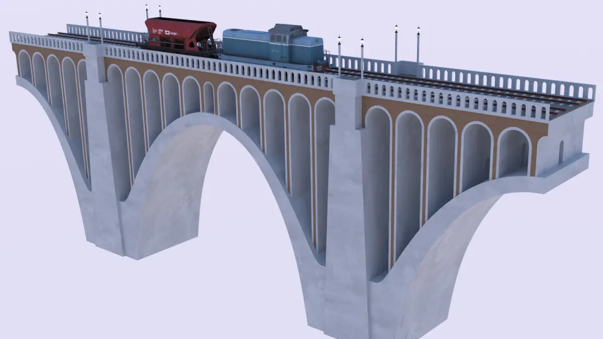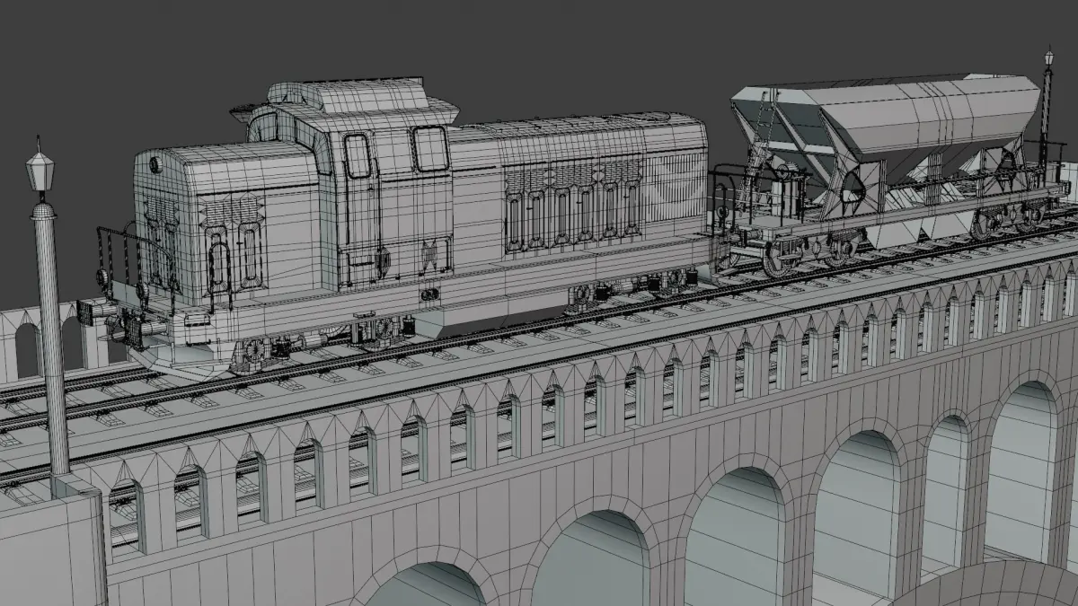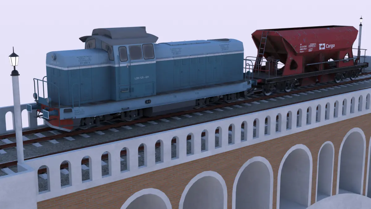 - This is 3D model of viaduct with locomotive Faur LDH-125 and cargo wagon of type Faccs.