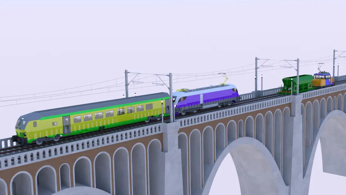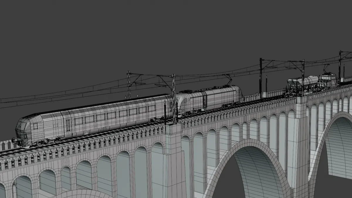 - This is 3D model of viaduct with Siemens passenger train and cargo train (locomotive Stadler Ee 922 and hopper wagon).
