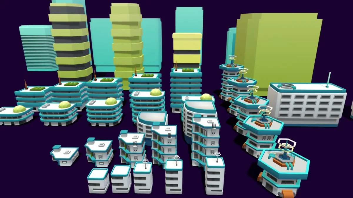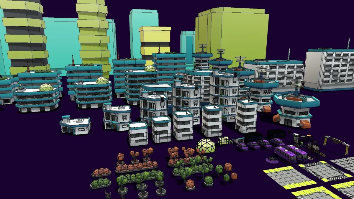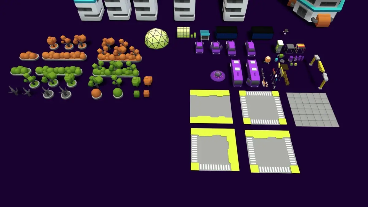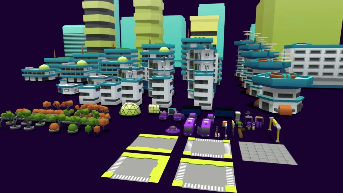 Is a metropolis of great opportunities where high-tech office buildings border on cozy residential buildings, and small, hospitable. It’s is a huge collection of 114 lowpoly models among which you will find the necessary city buildings, modular architectural elements and decorations, props and foliage ready to build up your own simulators and tycoon games.