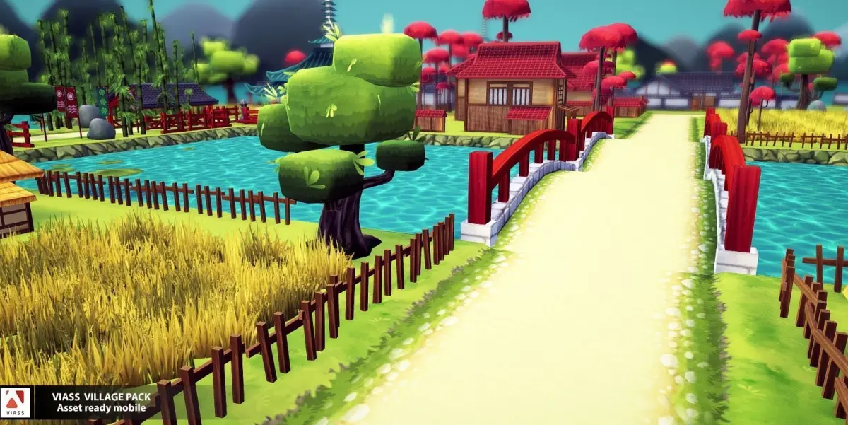 Including a demo scene.More than 80 unique models, for example:-Temple-Building set-Wooden/Stone fence-Grass ground-Tent-Wooden/Stone bridge-Road-Ornamental plant-Ancient gate-Stone-Mountain, hill-Tree x 6-Pond-Rice tree-Bamboo x 3