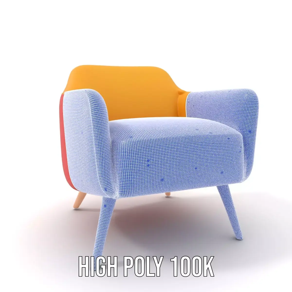 This vibrant armchair model pack features a striking red and yellow upholstery design, perfect for contemporary living spaces or modern office setups. The chair's elegant wooden legs add a touch of natural warmth, making it suitable for a wide range of interior styles. Each model has 3 levels of detail: low-poly (1000 triangles for mobile), middle-poly (10,000 triangles for environment), and high-poly (100,000 triangles), which allows for the use of this model in production rendering (such as 3ds Max, Maya, Cinema4D, Blender, Vray/Corona/Cycles and all others), game engines (Unity and Unreal compatible), and interactive presentations, providing a choice of detail based on the LOD System principle. The model's textures are PBR, Diffuse, NormalMap, and reflection/roughness/metallic, which are suitable for any modern rendering engine. All models accurately unwrapped and have no overlapping UV. All textures are 4096x4096 in size. Enhance your renders and scenes with this stylish piece of furniture. Please like and leave a comment for the model if you enjoyed it.