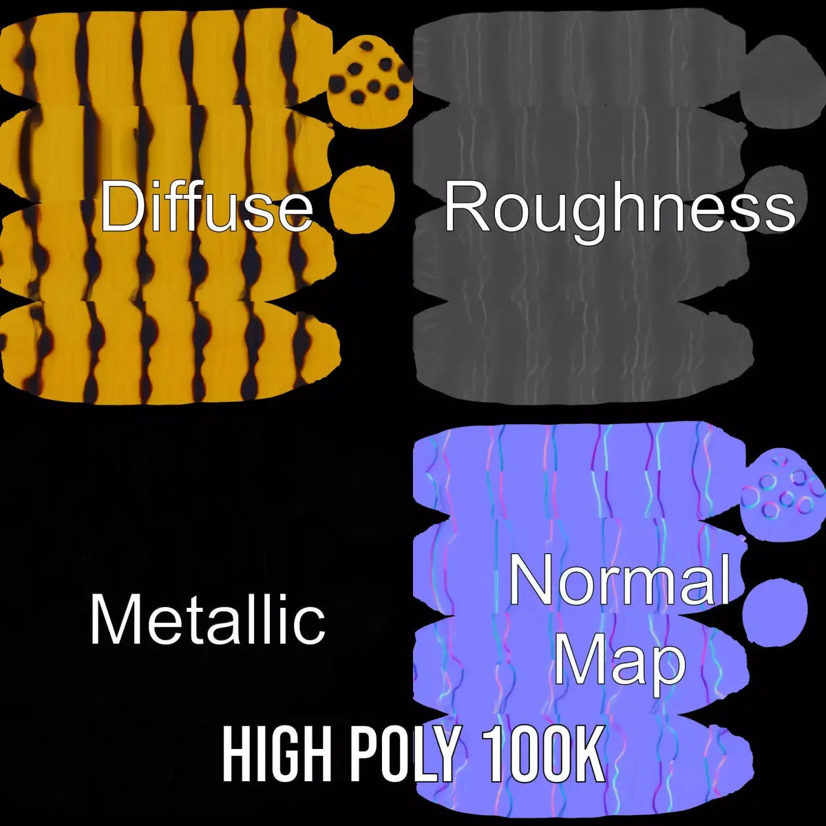 This 3D model captures the vibrant and detailed design of a toy caterpillar, characterized by its bright yellow and black striped pattern. Ideal for educational environments, children's games, and animations, this model brings a playful yet realistic touch to your projects. Each model has 3 levels of detail: low-poly (1000 triangles for mobile), middle-poly (10,000 triangles for environment), and high-poly (100,000 triangles), which allows for the use of this model in production rendering (such as 3ds Max, Maya, Cinema4D, Blender, Vray/Corona/Cycles and all other), game engines (Unity and Unreal compatible), and interactive presentations, providing a choice of detail based on the LOD System principle. The model's textures are PBR, Diffuse, NormalMap, and reflection/roughness/metallic, which are suitable for any modern rendering engine. All models accurately unwrapped and have no overlapping UV. Enjoy the high-quality textures at 4096*4096 resolution. If you liked the model, please leave a comment and like!