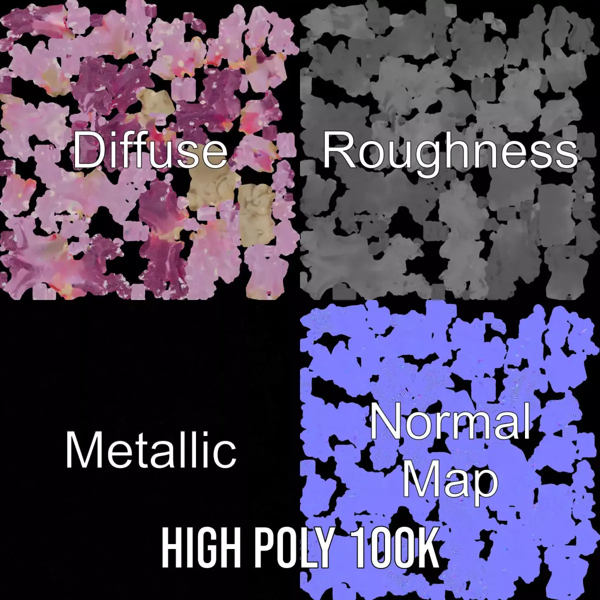 This vibrant coral reef model pack captures the intricate beauty of marine life with vivid colors and delicate branching structures. Ideal for underwater scenes, educational content, and virtual aquariums. Each model has 3 levels of detail: low-poly (1000 triangles for mobile), middle-poly (10,000 triangles for environment), and high-poly (100,000 triangles), which allows for the use of this model in production rendering (such as 3ds Max, Maya, Cinema4D, Blender, Vray/Corona/Cycles, and all others), game engines (Unity and Unreal compatible), and interactive presentations, providing a choice of detail based on the LOD System principle. The model's textures are PBR, Diffuse, NormalMap, and reflection/roughness/metallic, which are suitable for any modern rendering engine. All models are accurately unwrapped and have no overlapping UV. Textures are 4096*4096 in size. If you like this model, please leave a like and a comment.