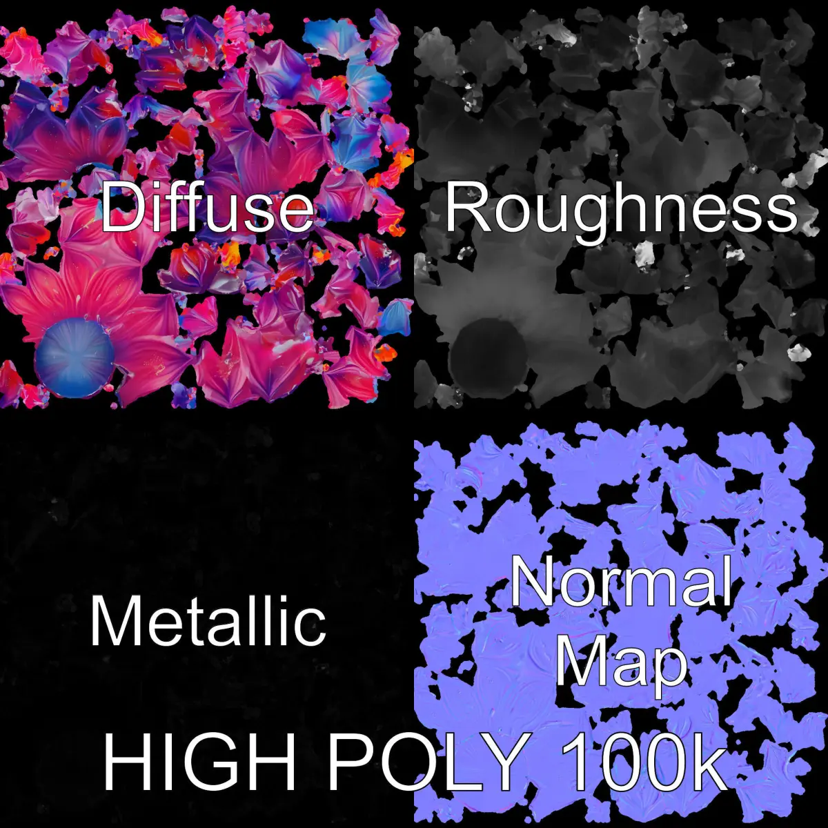The Dahlia Flower 3D model pack features three levels of detail: low-poly for mobile (1000 triangles), middle-poly for environmental scenes (10,000 triangles), and high-poly for production rendering (100,000 triangles). Perfect for use in 3D rendering programs like 3ds Max, Maya, Cinema 4D, Blender, using engines such as Vray, Corona, and Cycles. Fully compatible with game engines like Unity and Unreal, it's ideal for interactive presentations and animations. Each model is provided with high-quality PBR textures, including Diffuse, NormalMap, and reflection/roughness/metallic, all at a resolution of 4096x4096. The models are accurately unwrapped with no overlapping UVs. Ideal for botanical visualizations, game assets, or architectural renderings. The first image is the reference used for creating the 3D model. It is important to carefully evaluate the quality of the model by examining the preview images that display the topology and polygonal mesh. These previews (WIRE and WEB 3D Preview) clearly demonstrate how accurately the model matches the original reference and how well the geometry has been executed. Please like and leave a comment if you appreciate the model.